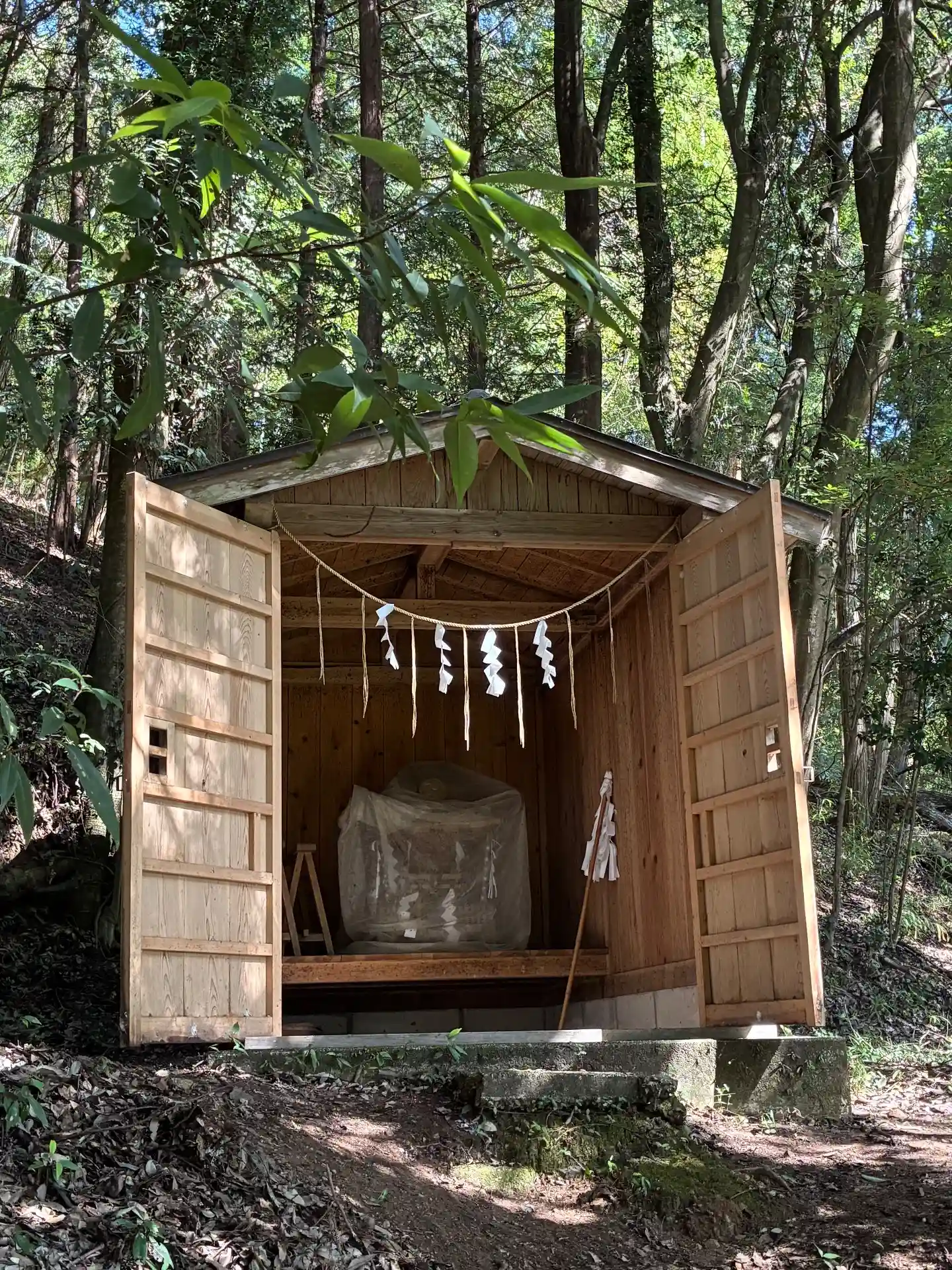 もう一つの社はこちらも開いていて中には神輿がありました。