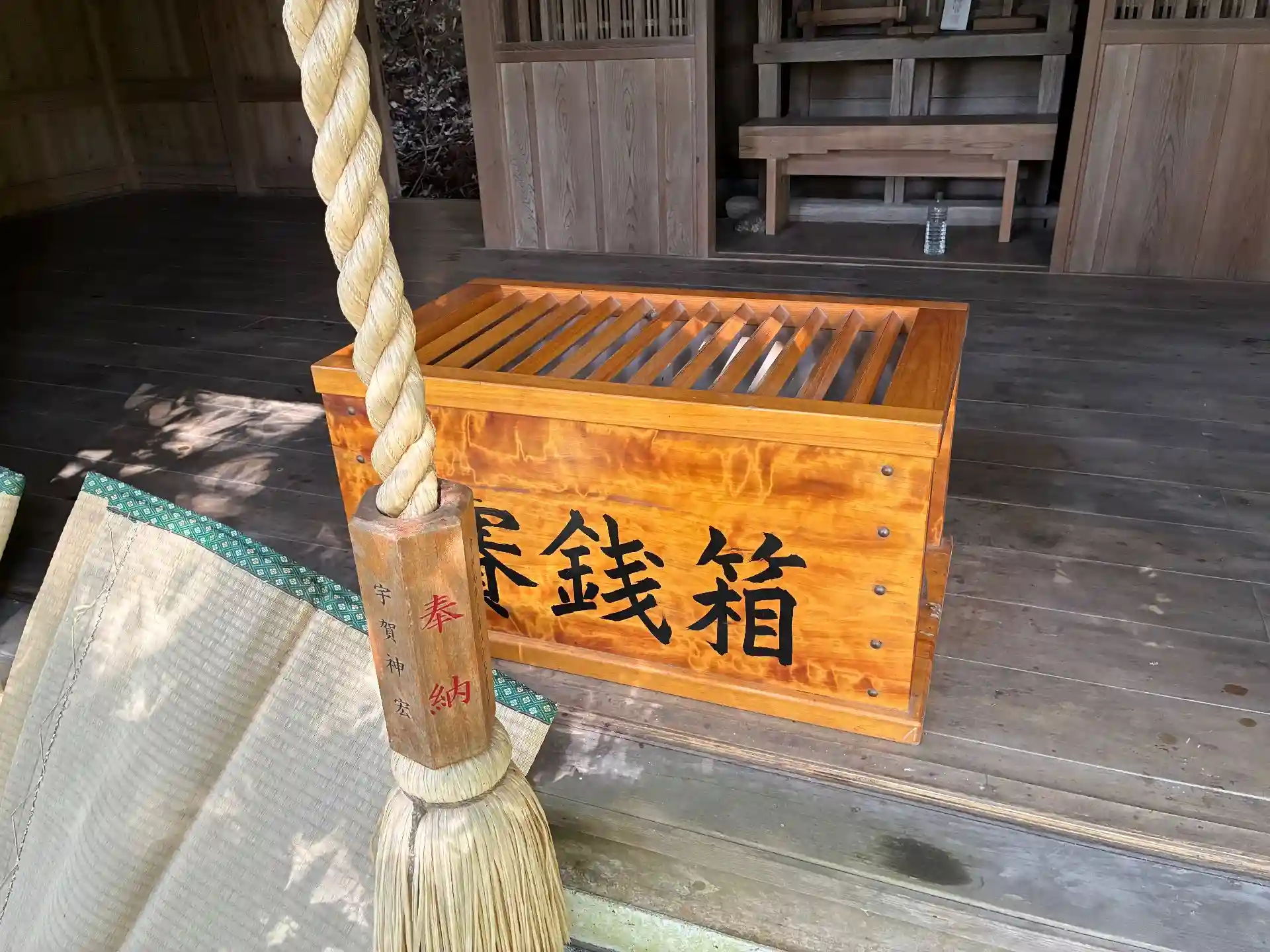 もしや宮司さんが居るのか?と参道の階段を登ると人影はなく、拝殿が開いていてゴザが干されていました。