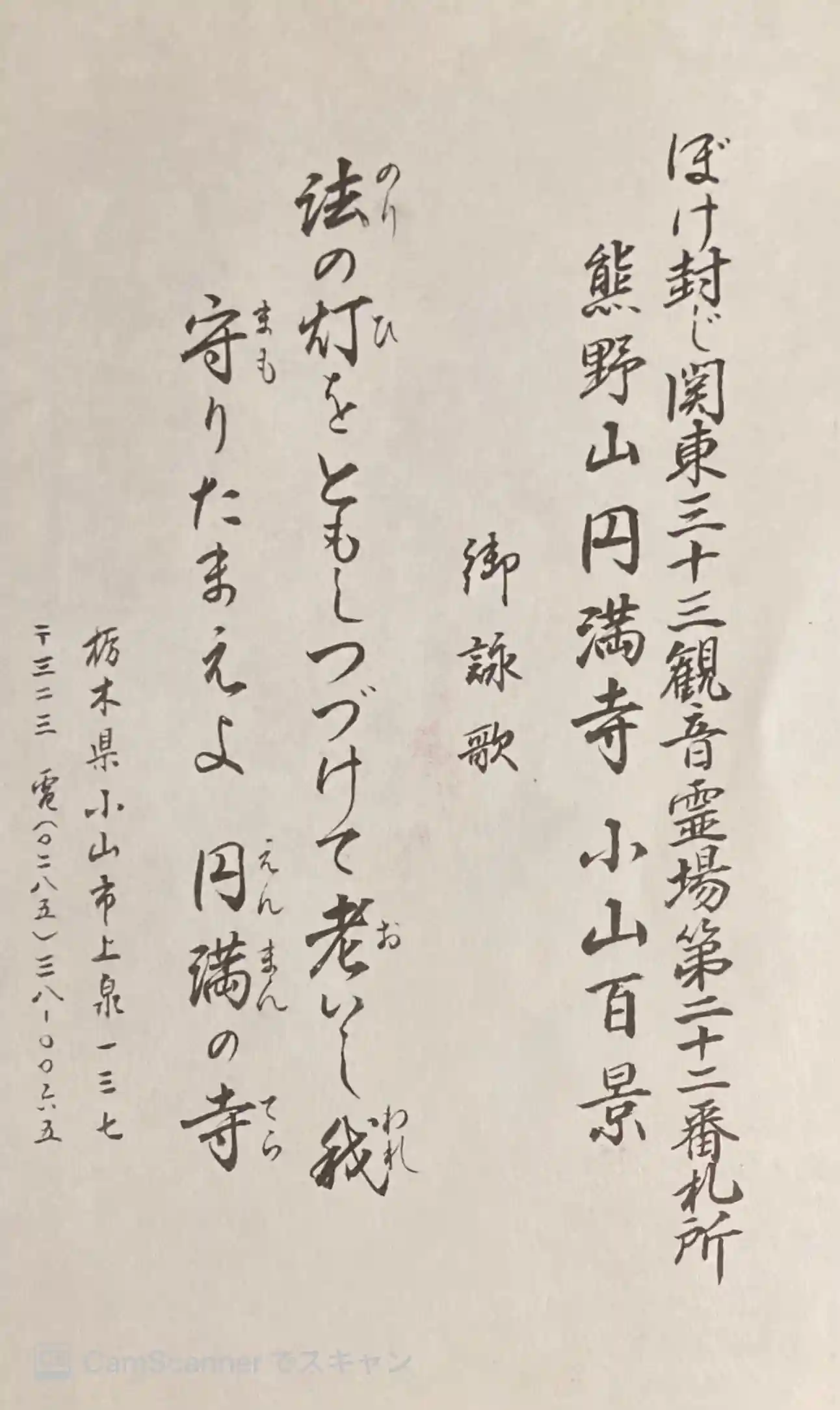 奥様が対応して頂きました。中学校の美術の先生をしてました。奥様手書きの不動尊です。色々お話しありがとうございました🙇♀️