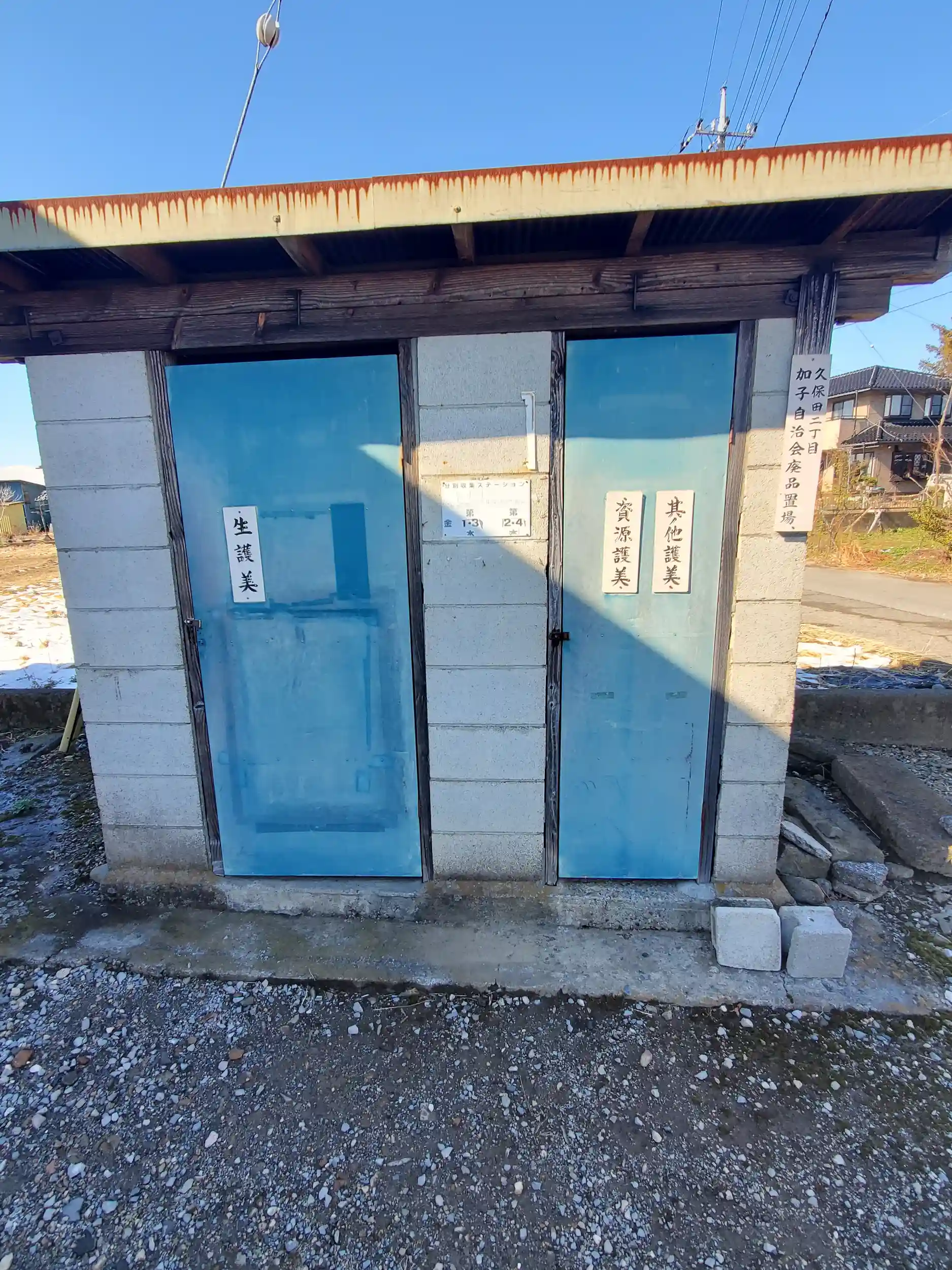 横はゴミステーションですが「生護美」「資源護美」「其ノ他護美」