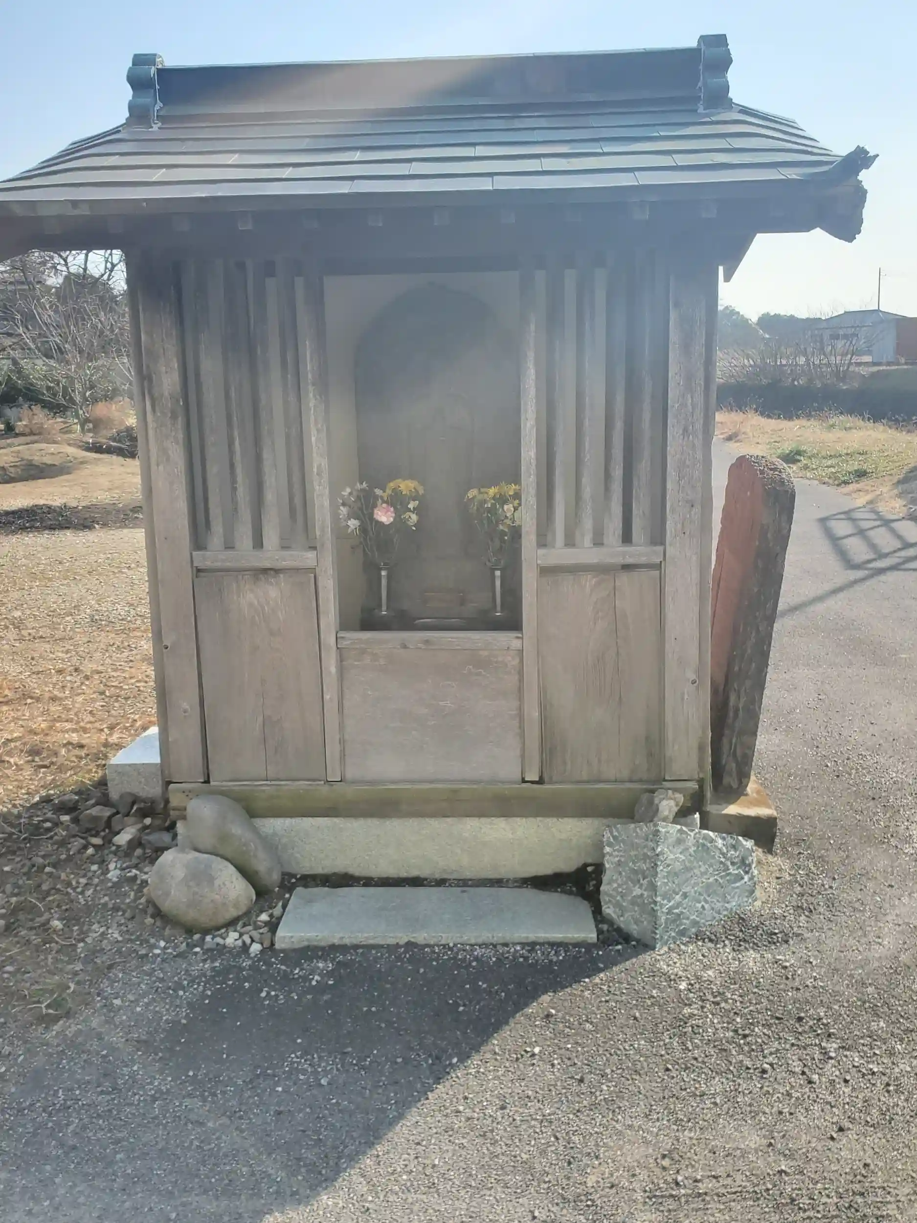 お地蔵さんの方は、小さいながらもちゃんとした堂宇が作られ献花もされてるので地域で信仰されてるお地蔵さんのようです。