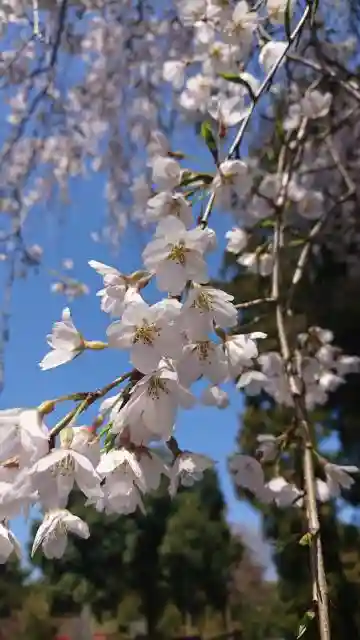 早目に咲く一重の垂れ桜です。拝殿手前の左右にあります。