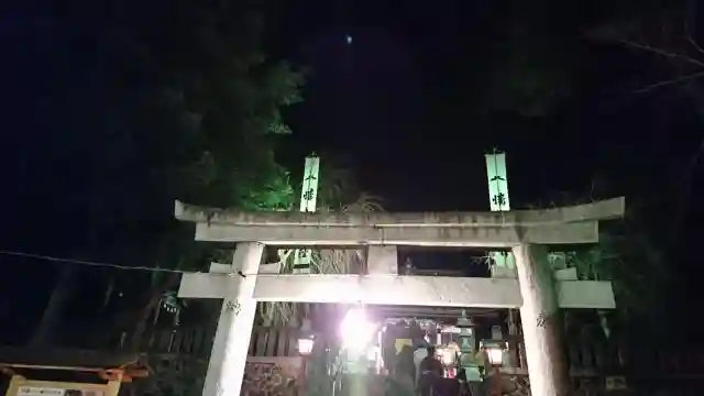 本殿右奥にある末社。左から「大山祗神社」「日枝神社」「天満宮」「若宮八幡宮」です。