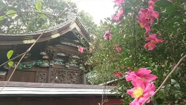 山茶花と本殿。