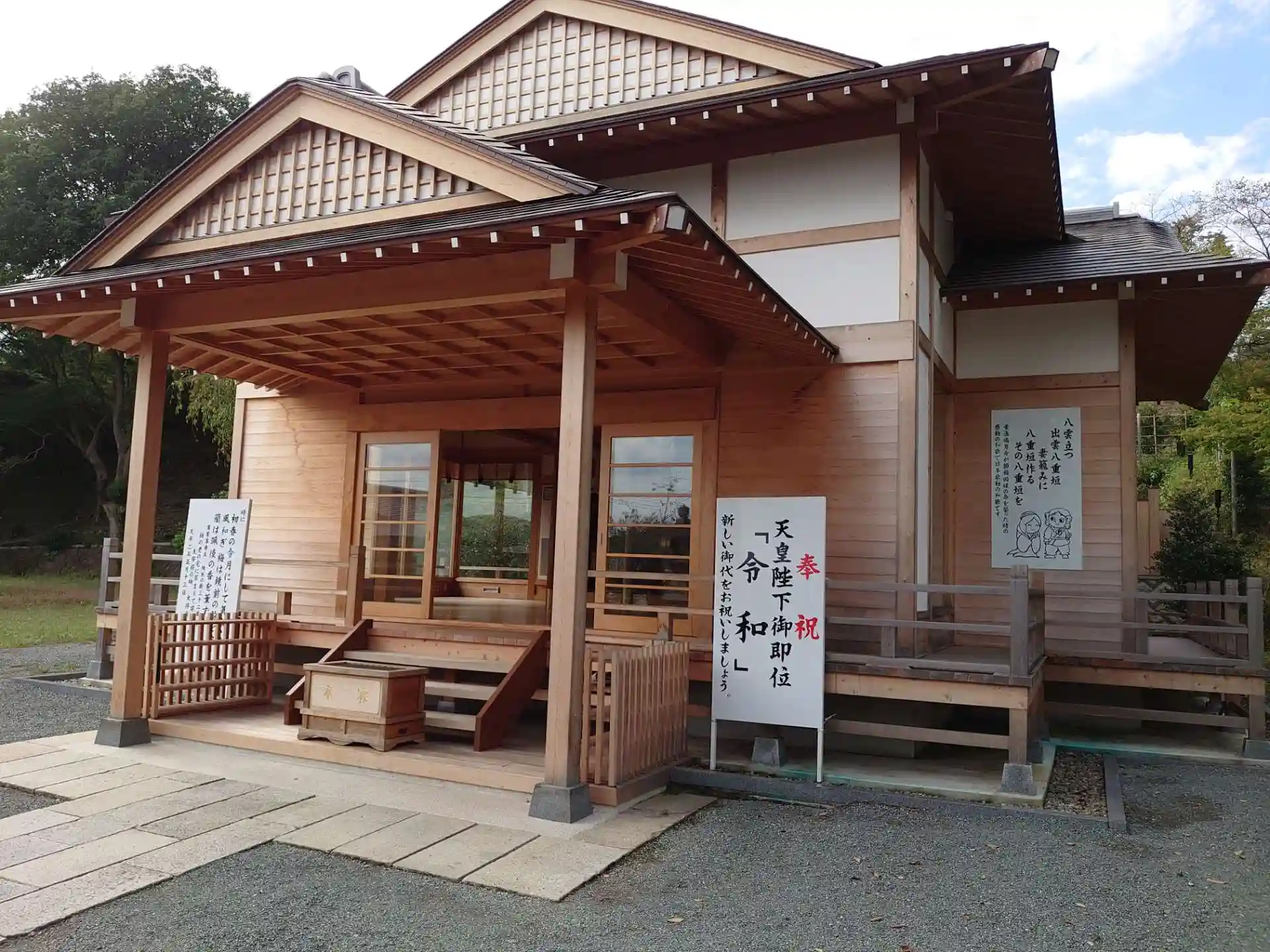 真新しい拝殿は火事で焼失したらしく、伊勢神宮の式年遷宮で解体された部材を譲渡されたらしいです。