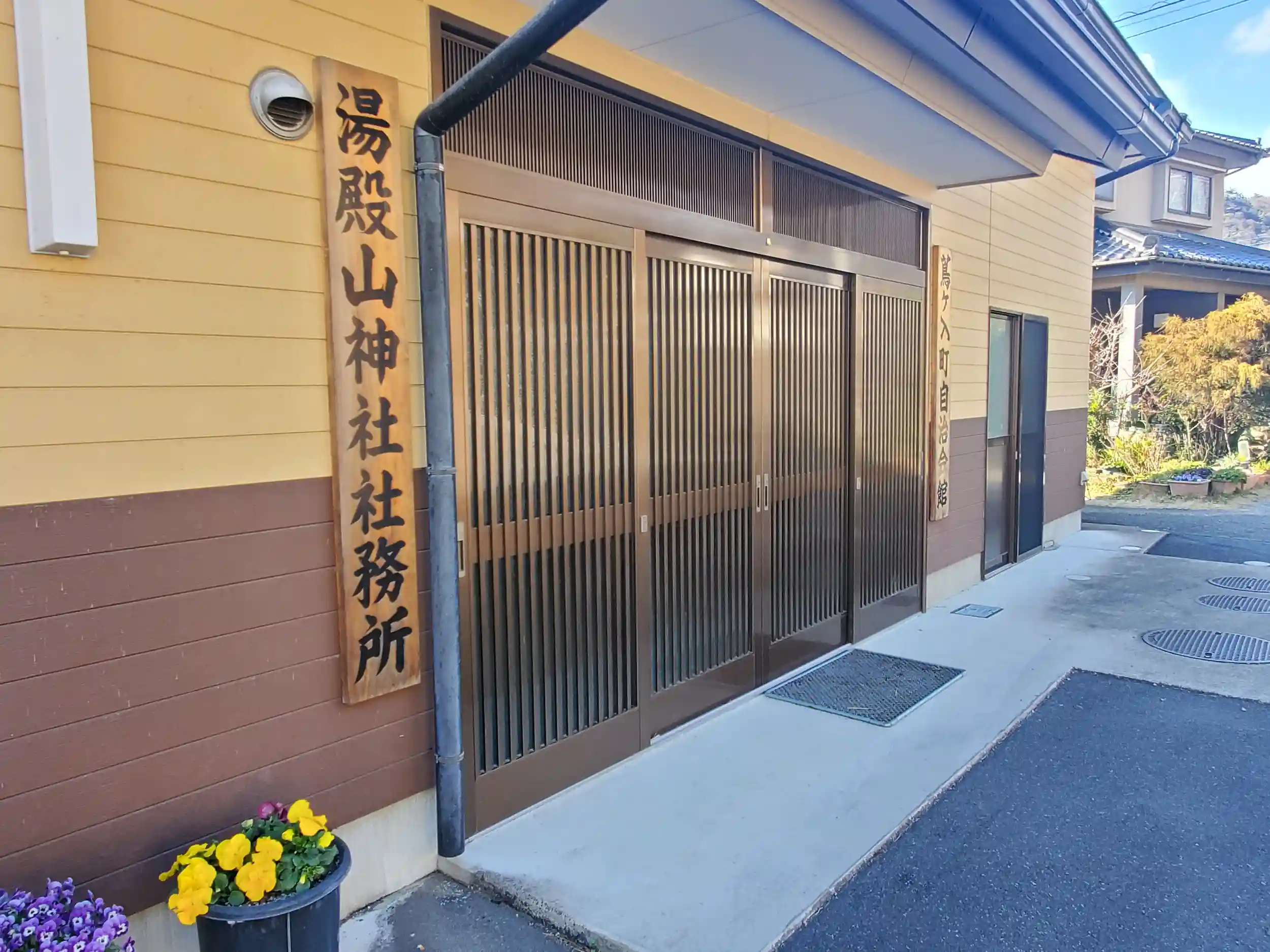 山の麓にある社務所兼公民館