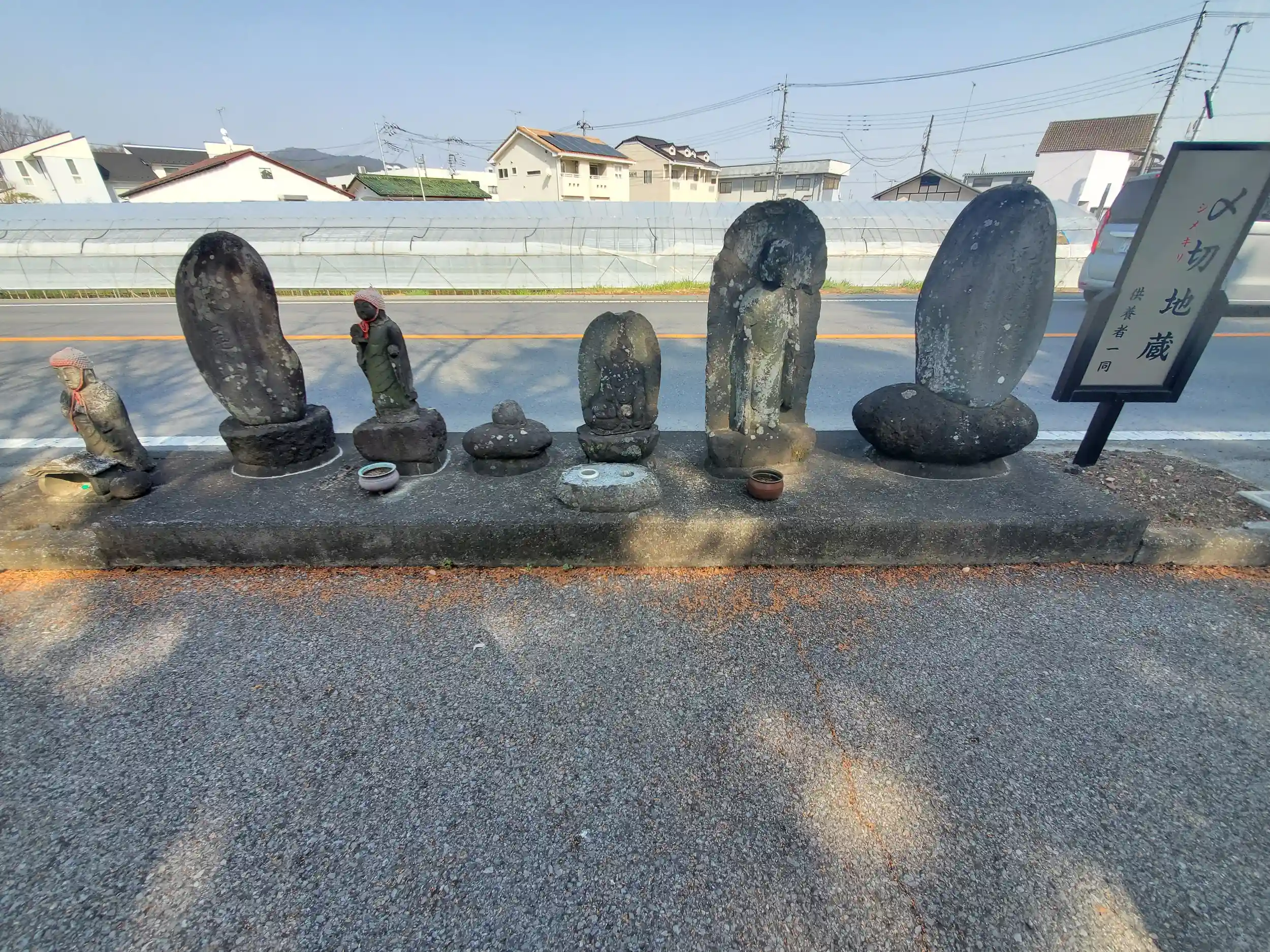足利大学前の道路沿いに鎮座する石仏群。