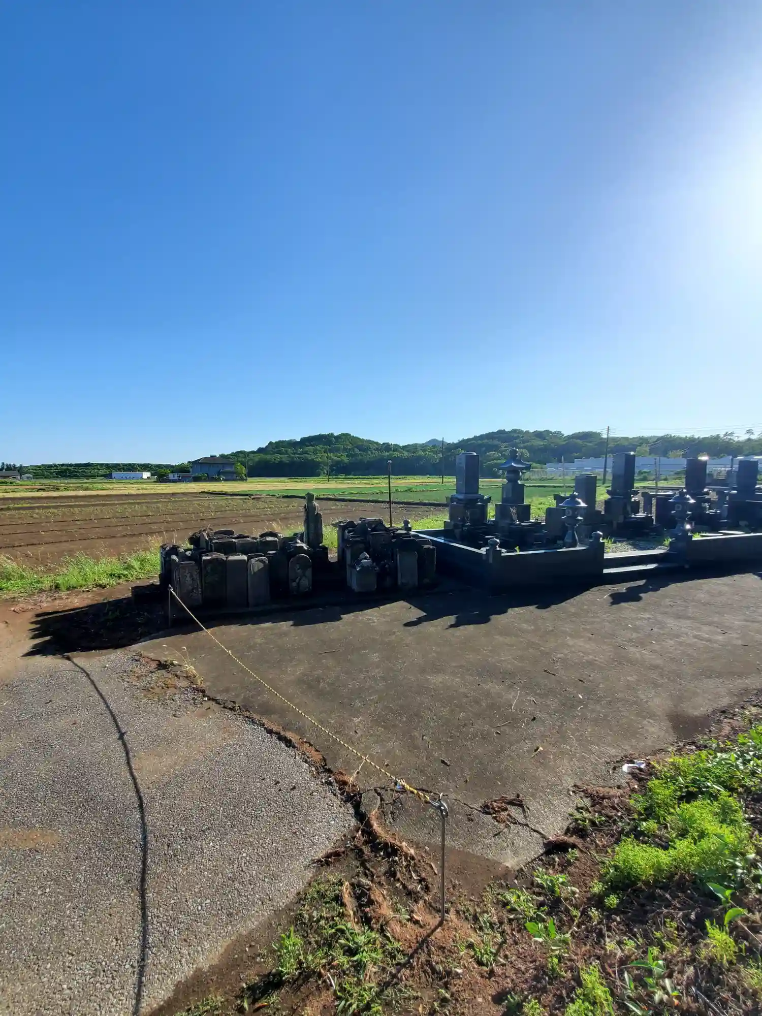 しかし墓地参道はロープで閉鎖されて入れなかったので、一本南の農道に止めてここから歩いて行くことに