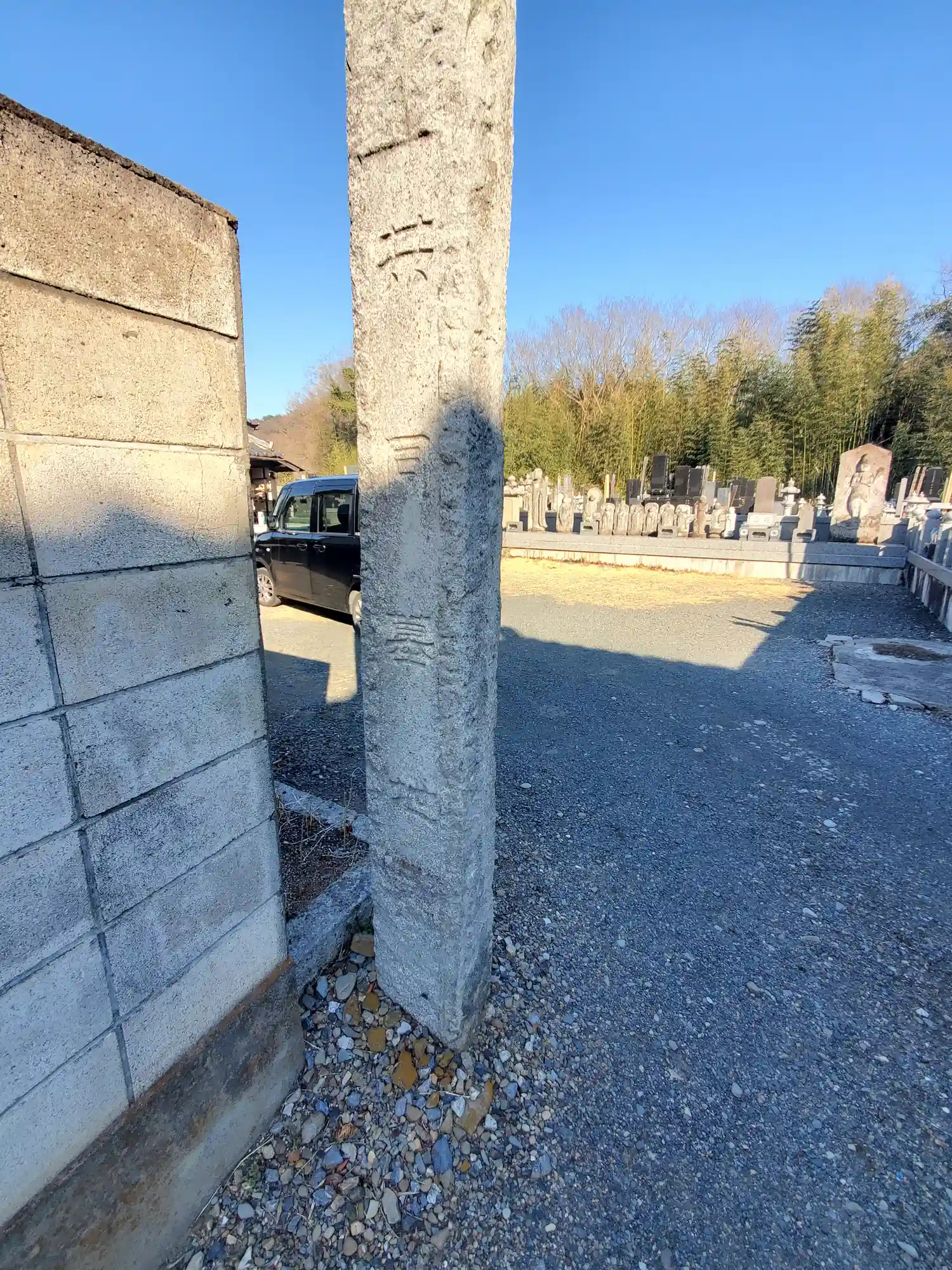 寺号柱に当時の寺号や山号が残ってないか期待したのですが「共同墓地」に変わってた😞