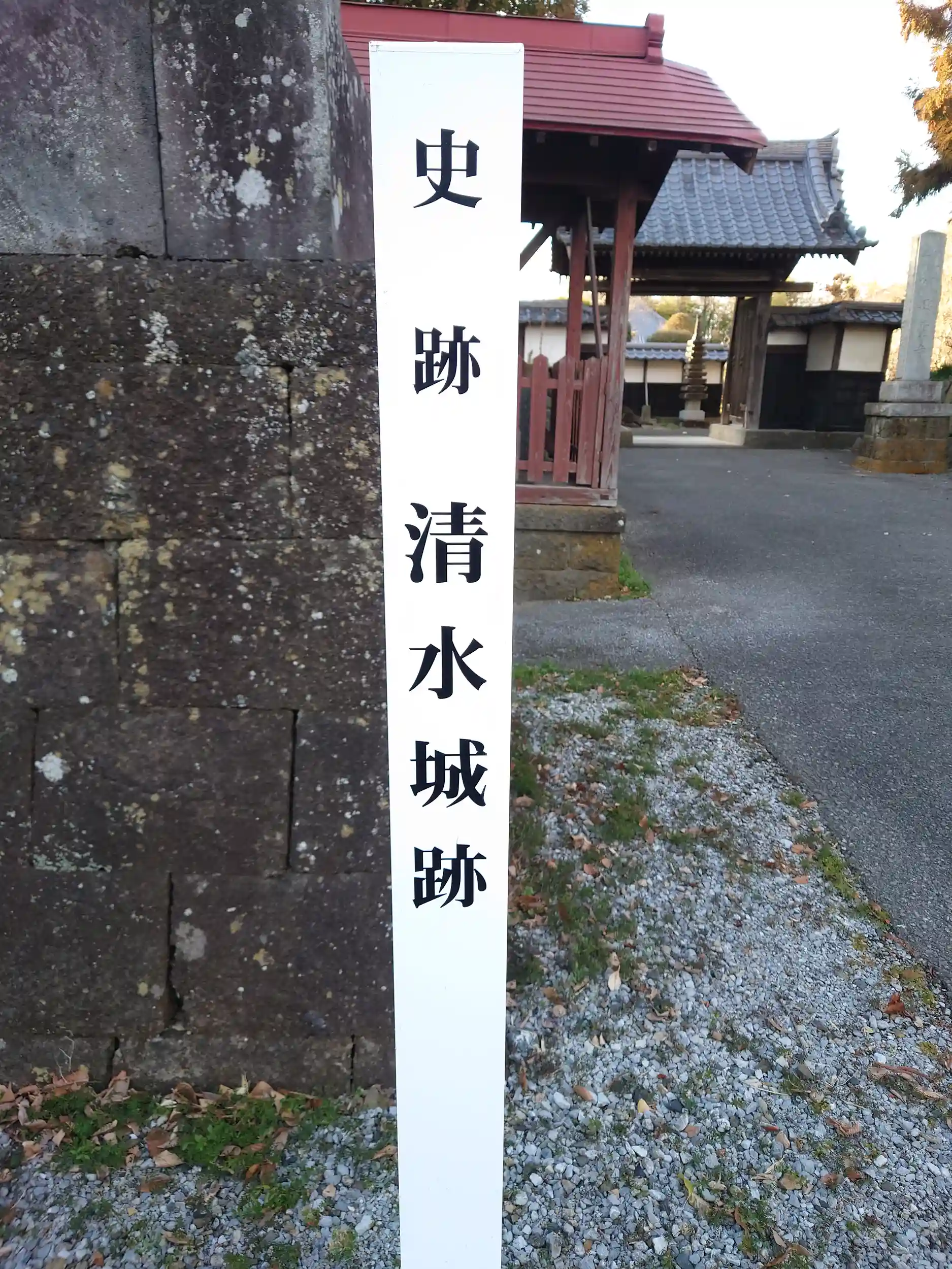 境内は『清水城』または『興聖寺城』と呼ばれる城跡で、現在も土塁や空堀が方形をなしています。