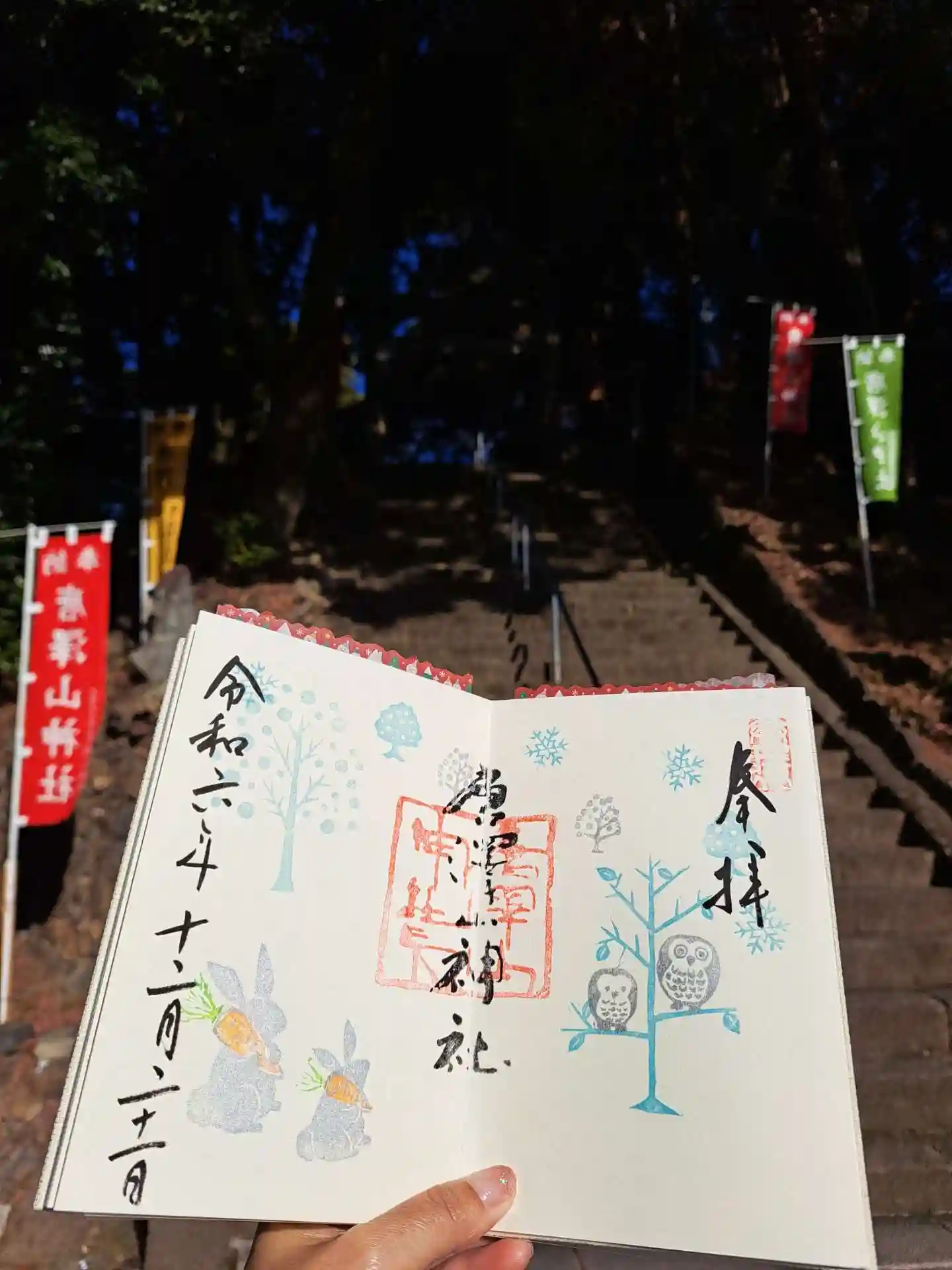 御朱印はポインセチアと雪うさぎの世界を頂きました。