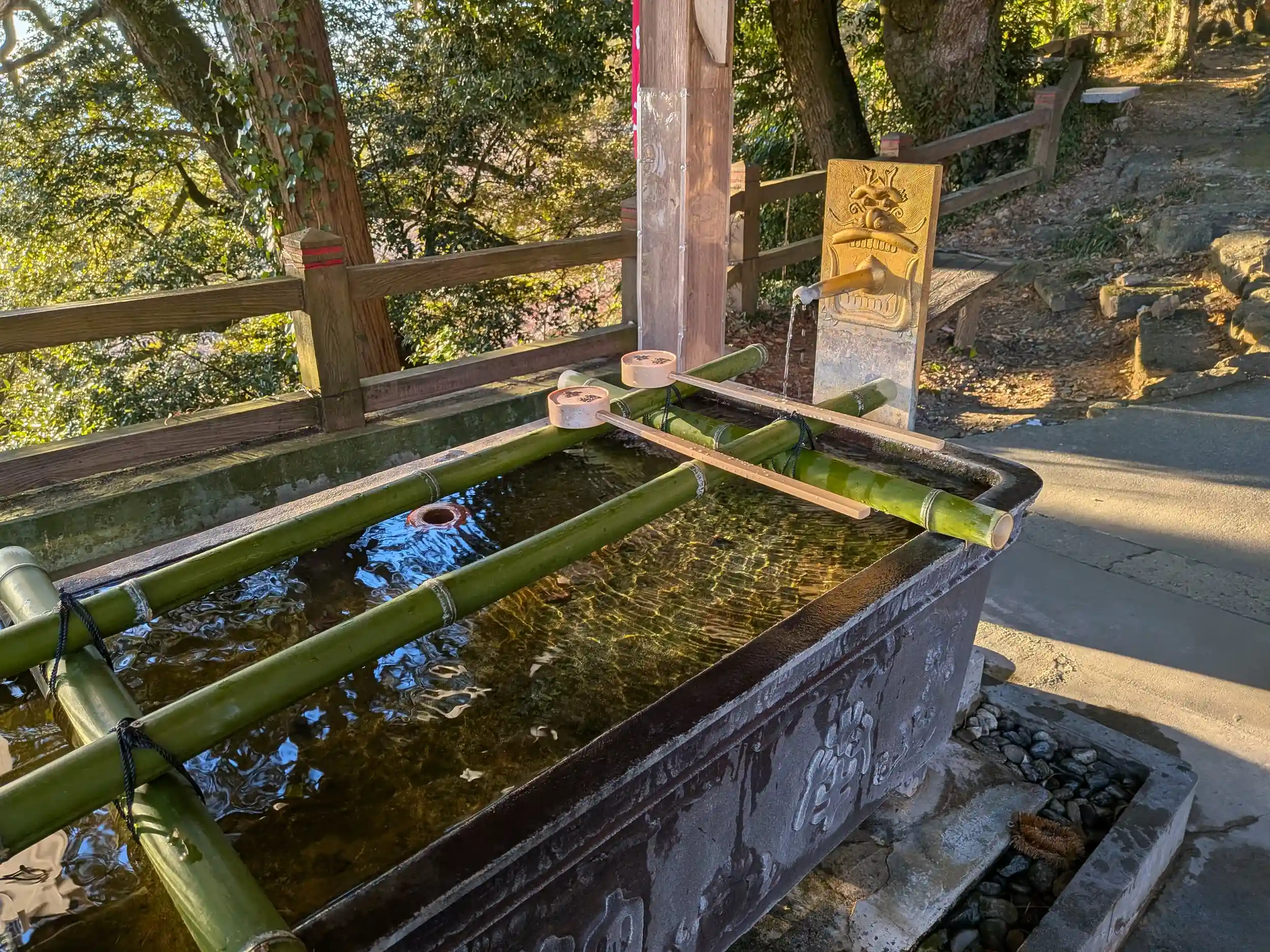 手水舎に夕日が当たって神々しい雰囲気に✨