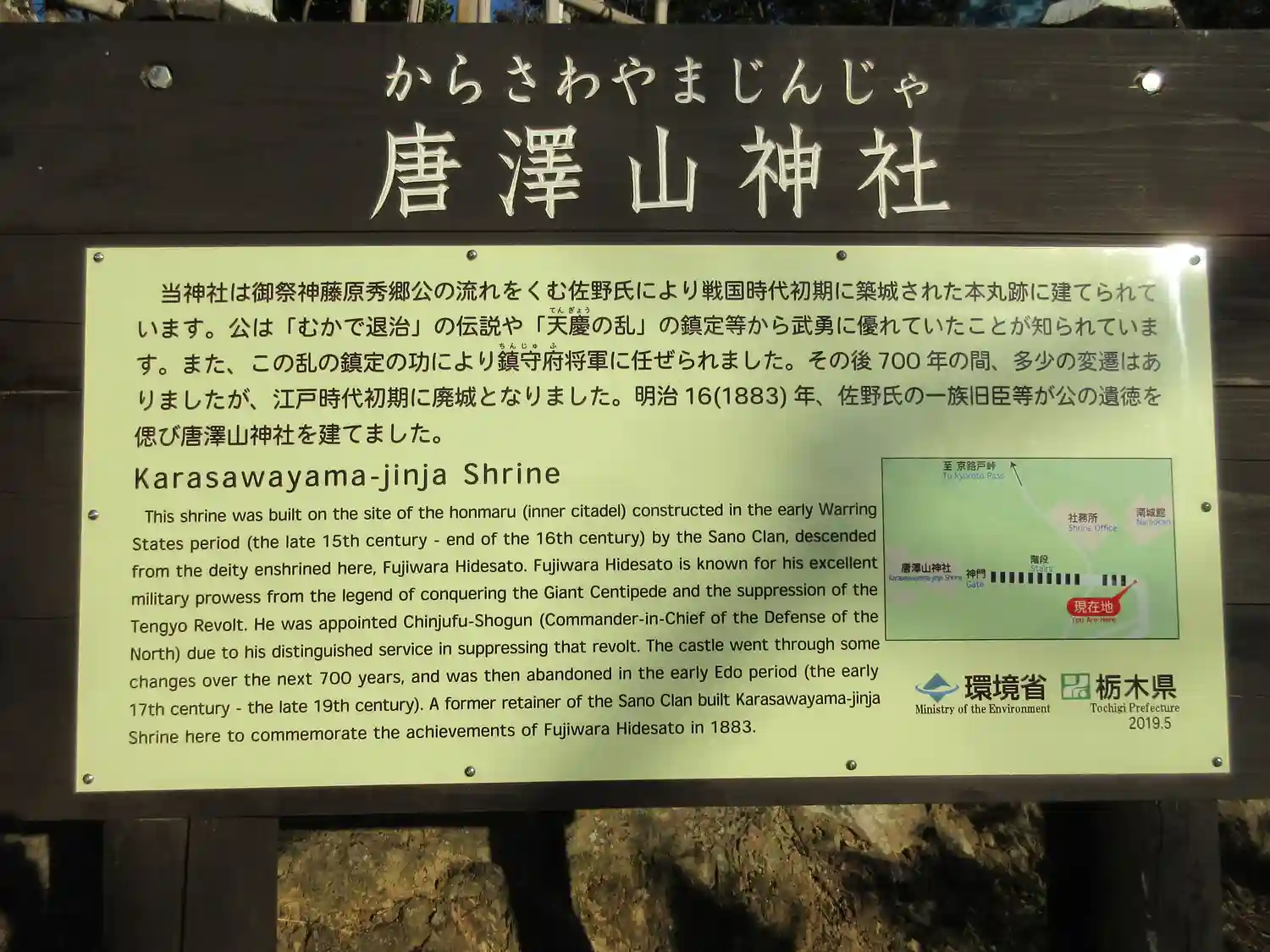唐澤山は今より1000年の昔「むかで退治」の伝説や、天慶の乱で平将門を滅ぼした藤原秀郷公の居城址で…