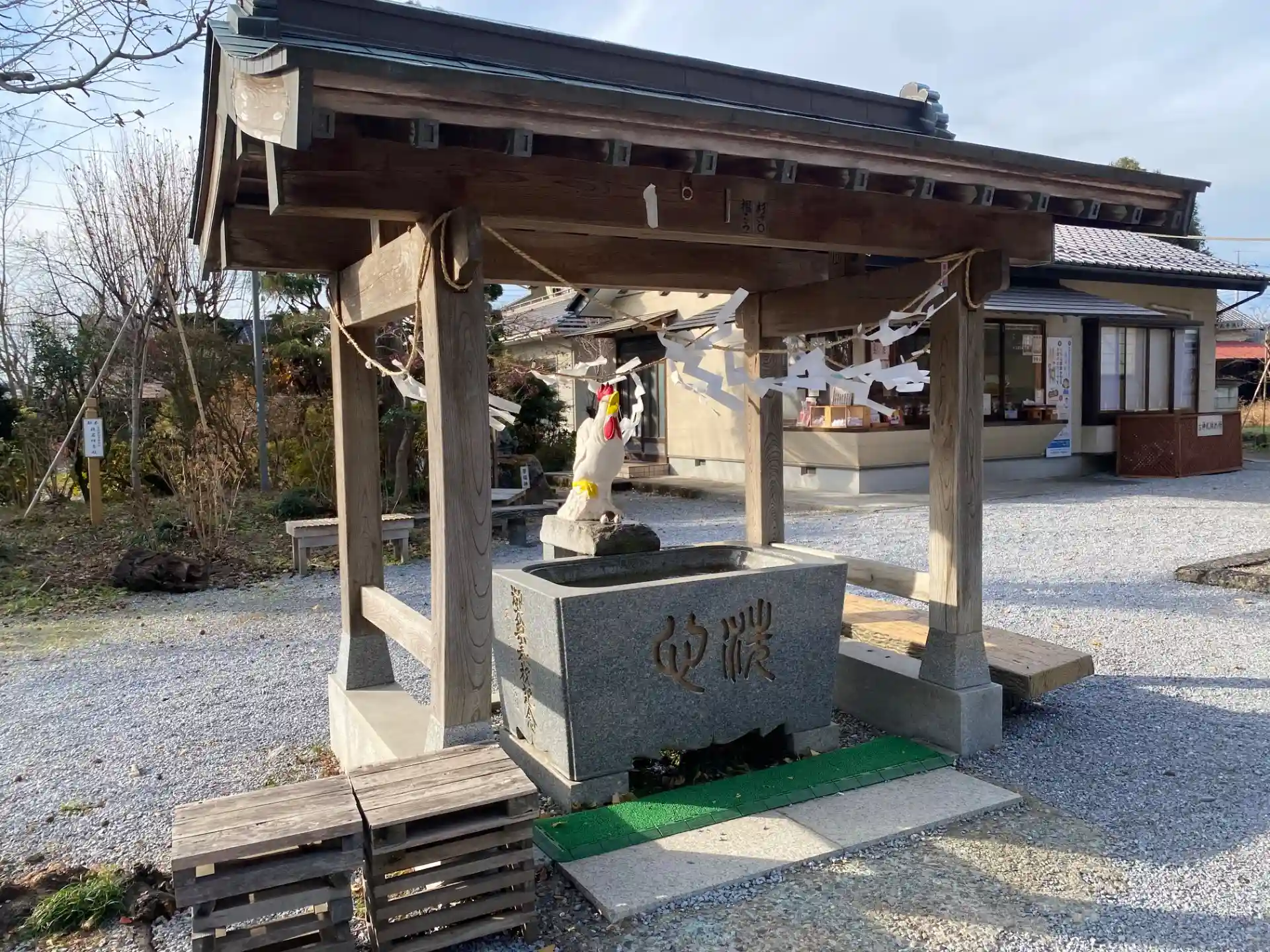 御朱印は社務所前でお電話連絡してからいただく形です。