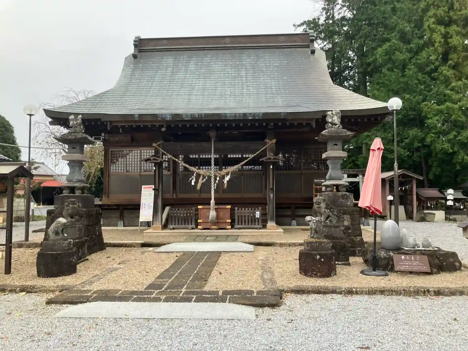 お酉様ということで、手水舎には鶏、拝殿には卵が有ります。境内は白砂利が敷き詰められて、神聖な場所と…
