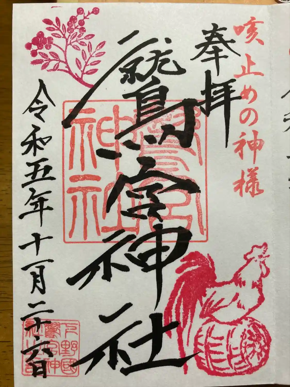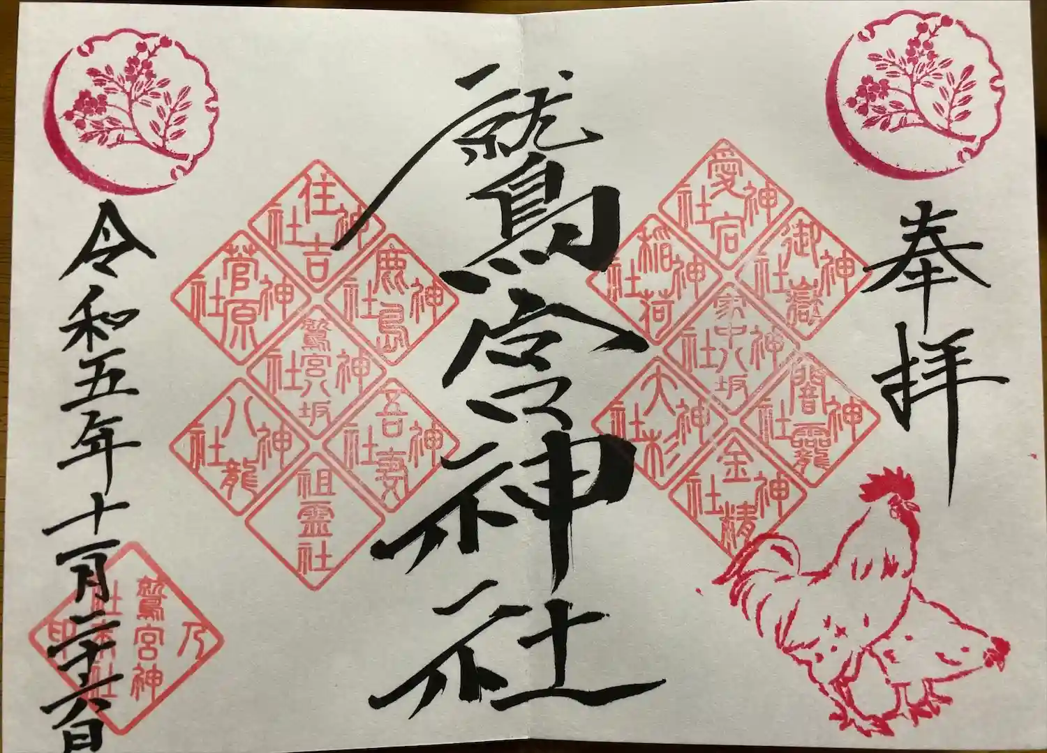 鶏の御朱印帳がカッコいいです。
