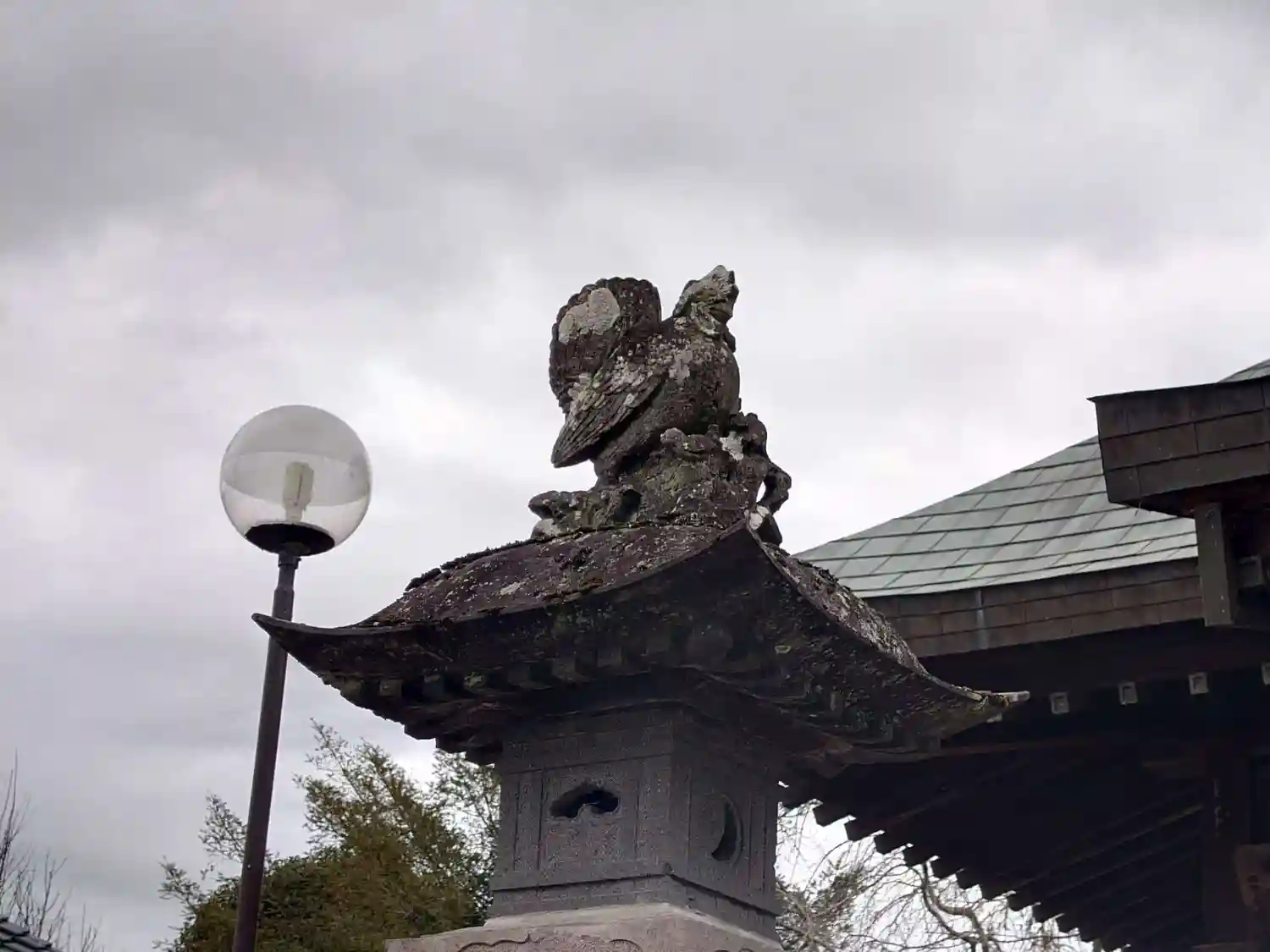 燈篭の上にもニワトリらしい鳥が🐓