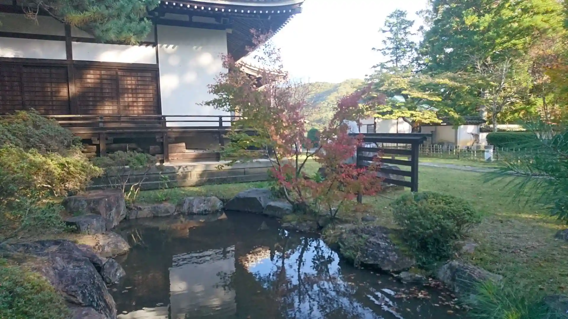 境内に池がいくつかあり傍らの楓も紅葉