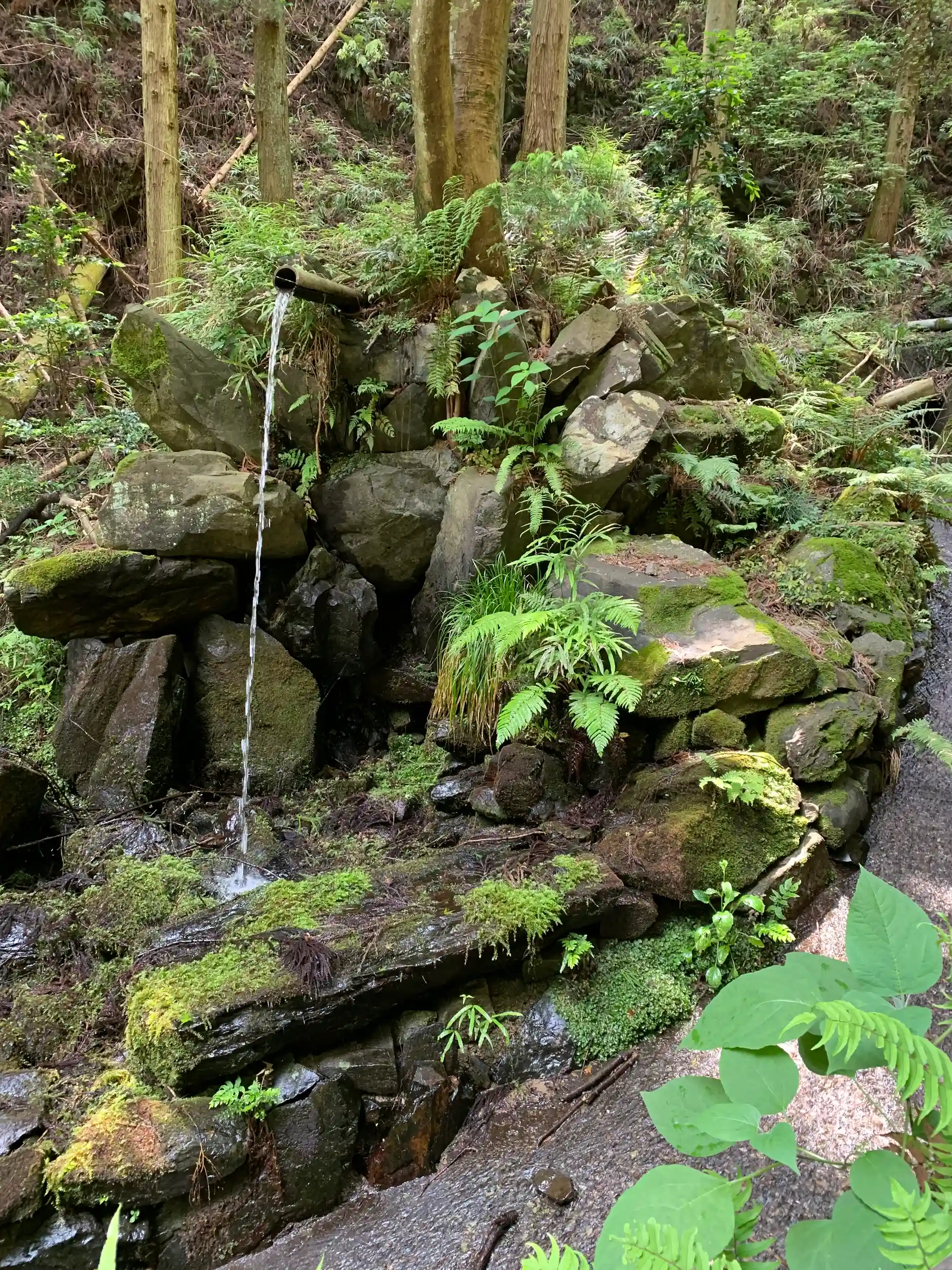 沢の水が滝のように流れ落ち、ちょっと一息つけます。