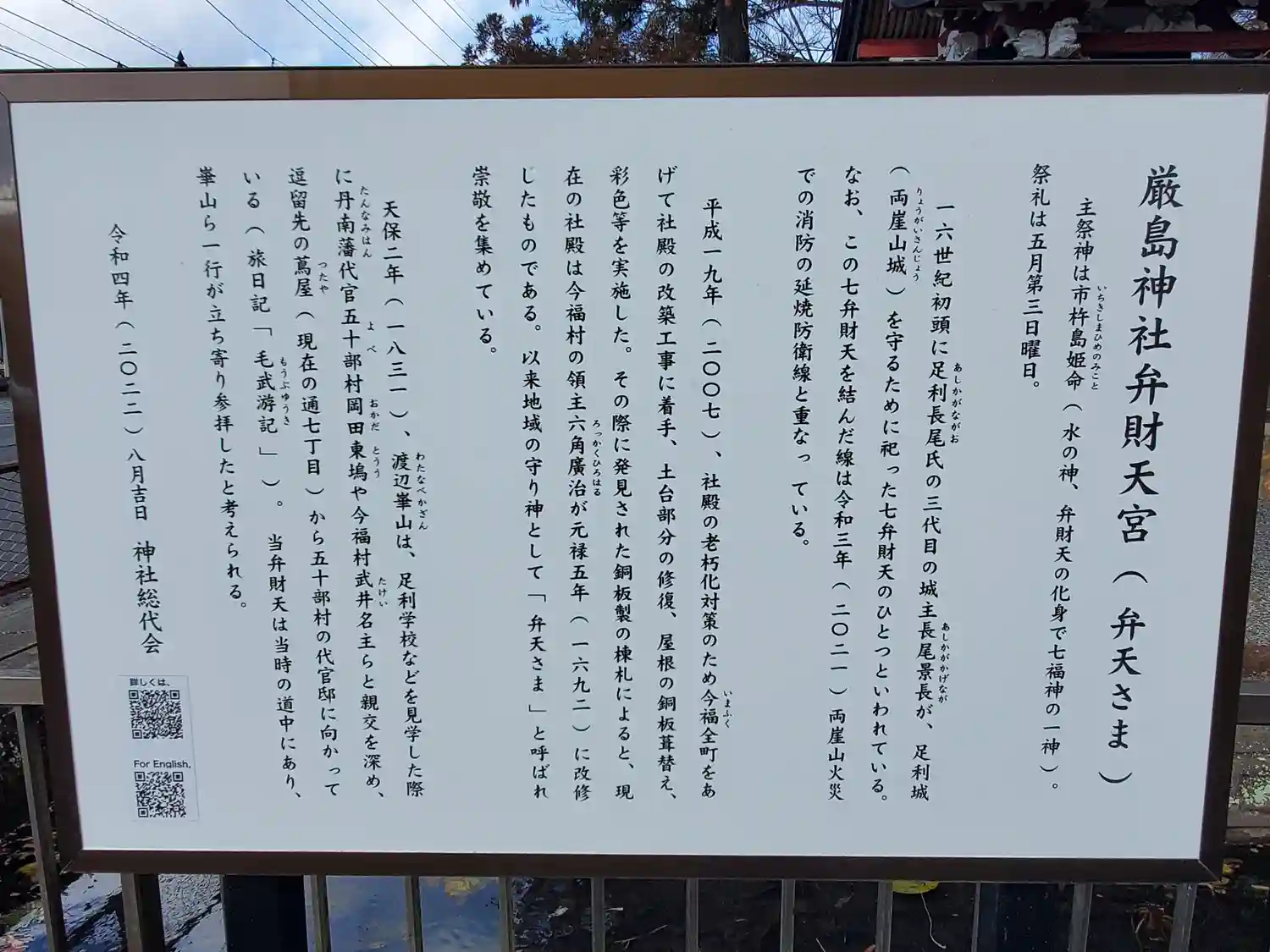 長尾景長が両崖山城守護のために勧請した七弁天