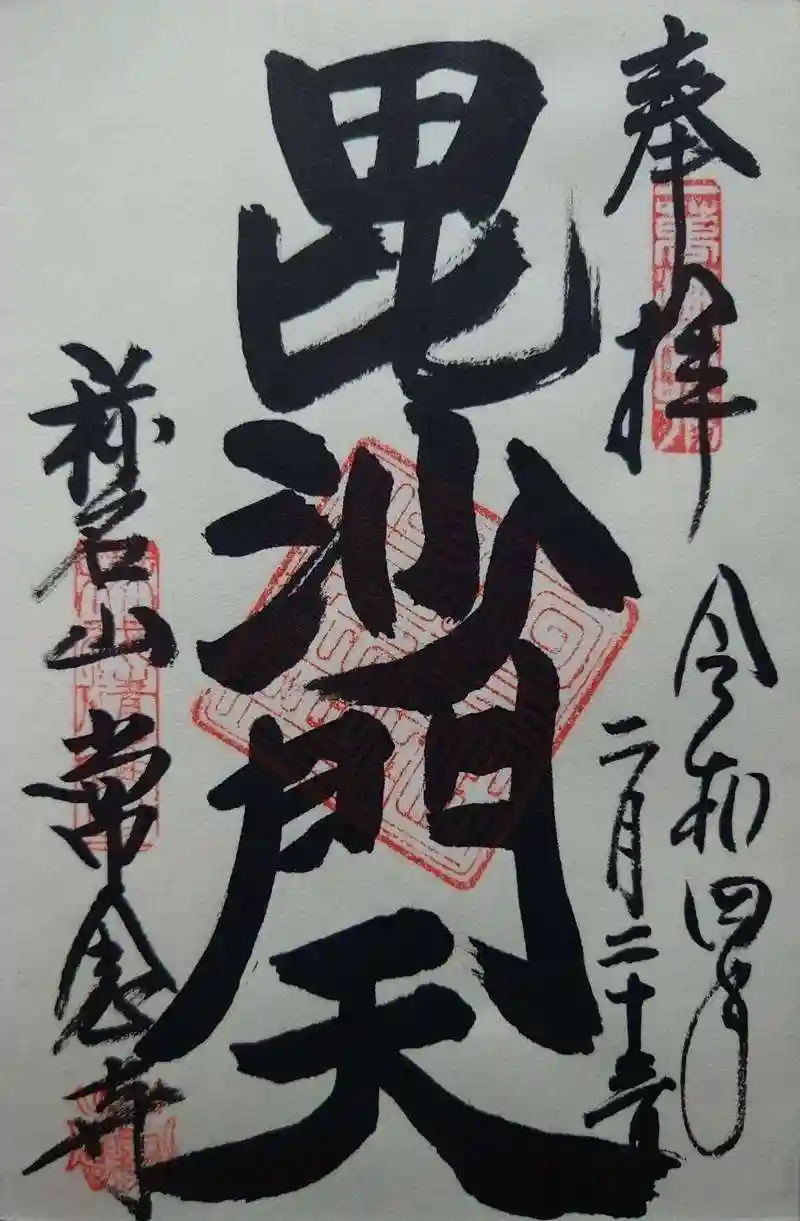 常念寺で毘沙門天の御朱印をいただきました。迫力ある書体です。