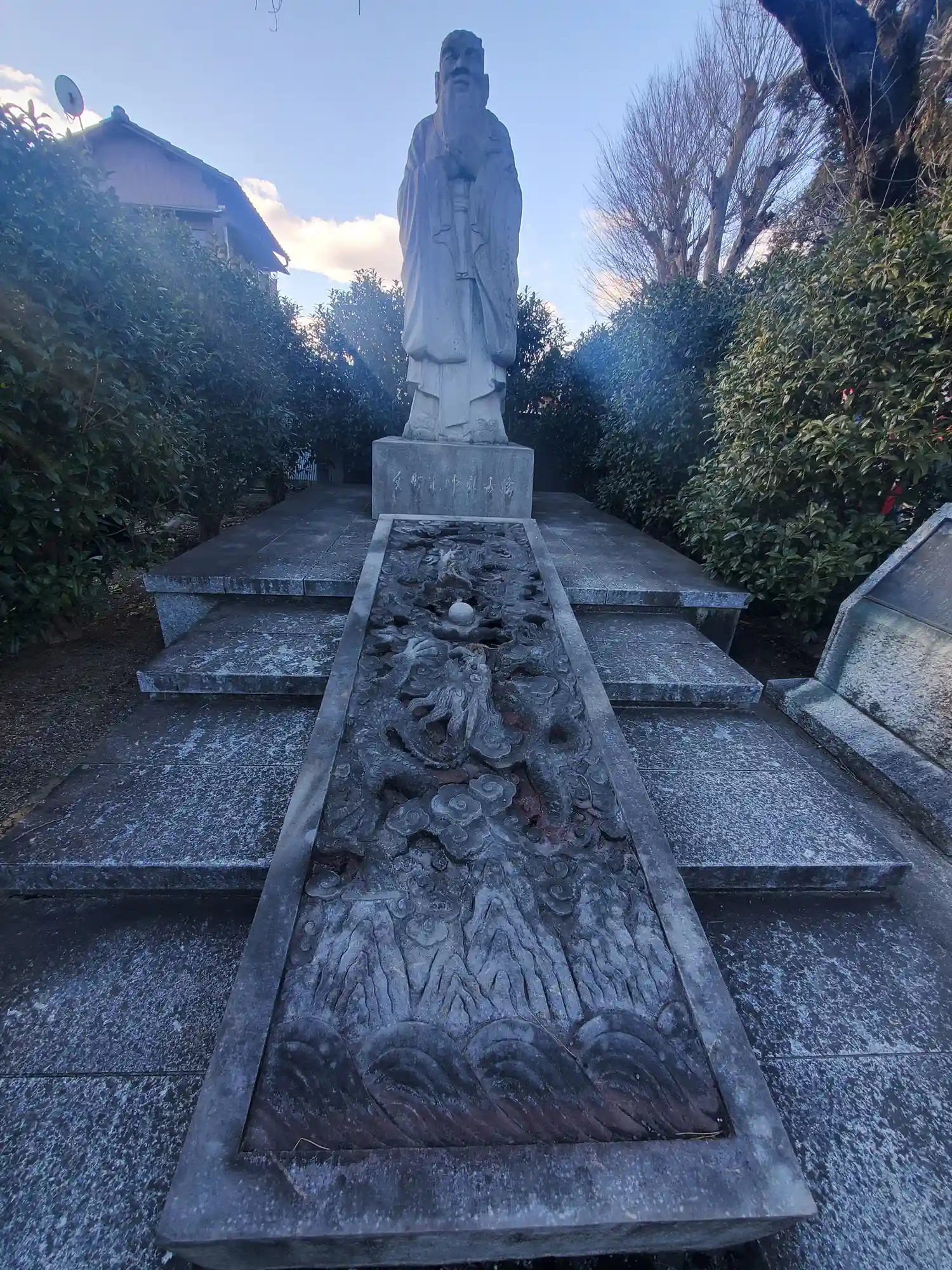 鳥居より手前に孔子石像があります