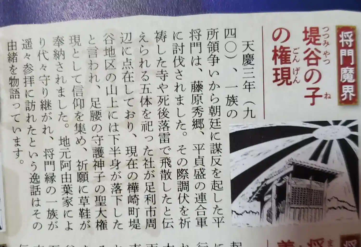 予想どおりというかやはり平将門と足利忠綱にまつわるスポットが中心