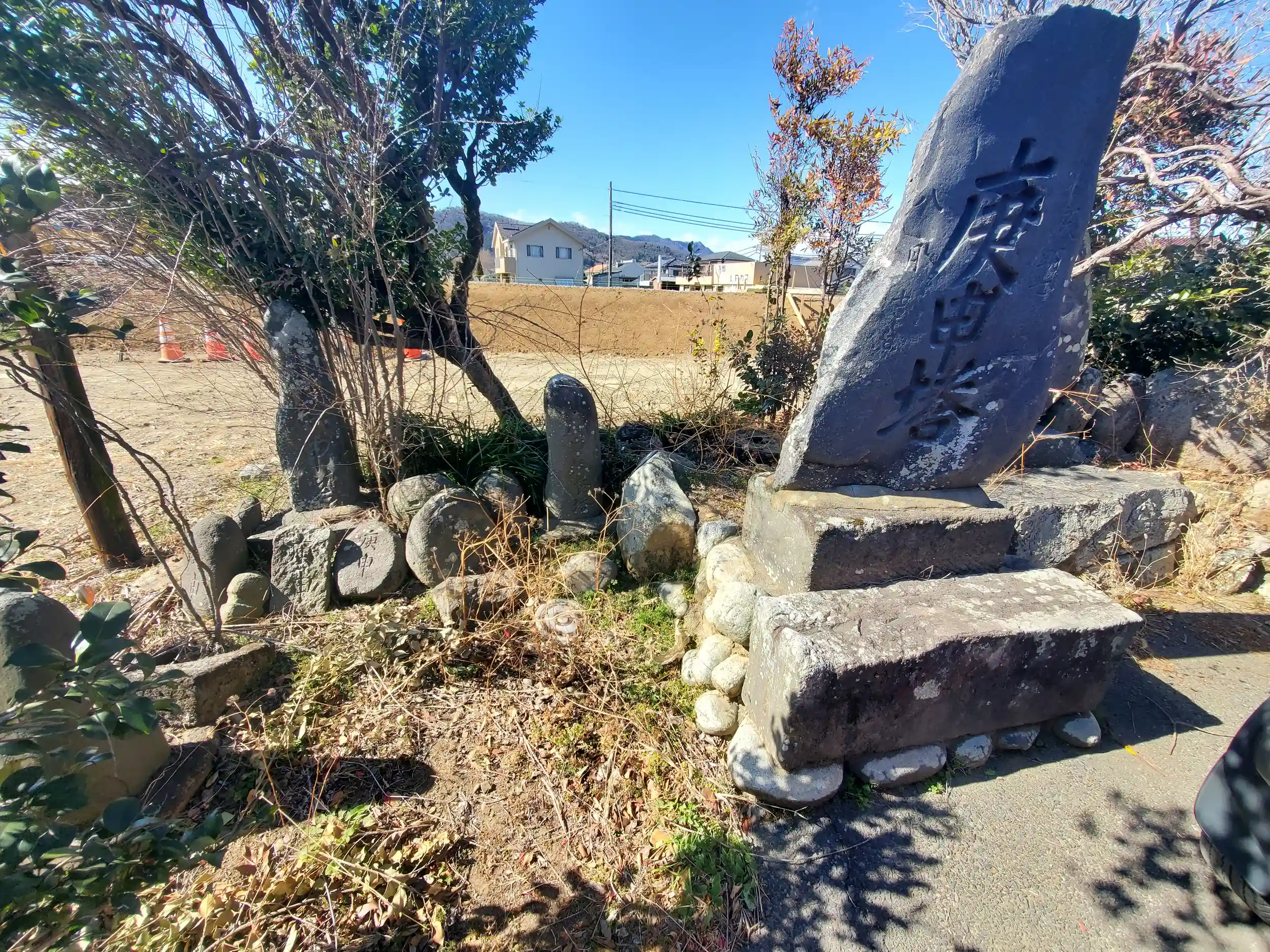 敷地は車1~2台程度しかなく、お堂以外は左の方に庚申や石仏が纏められてる程度