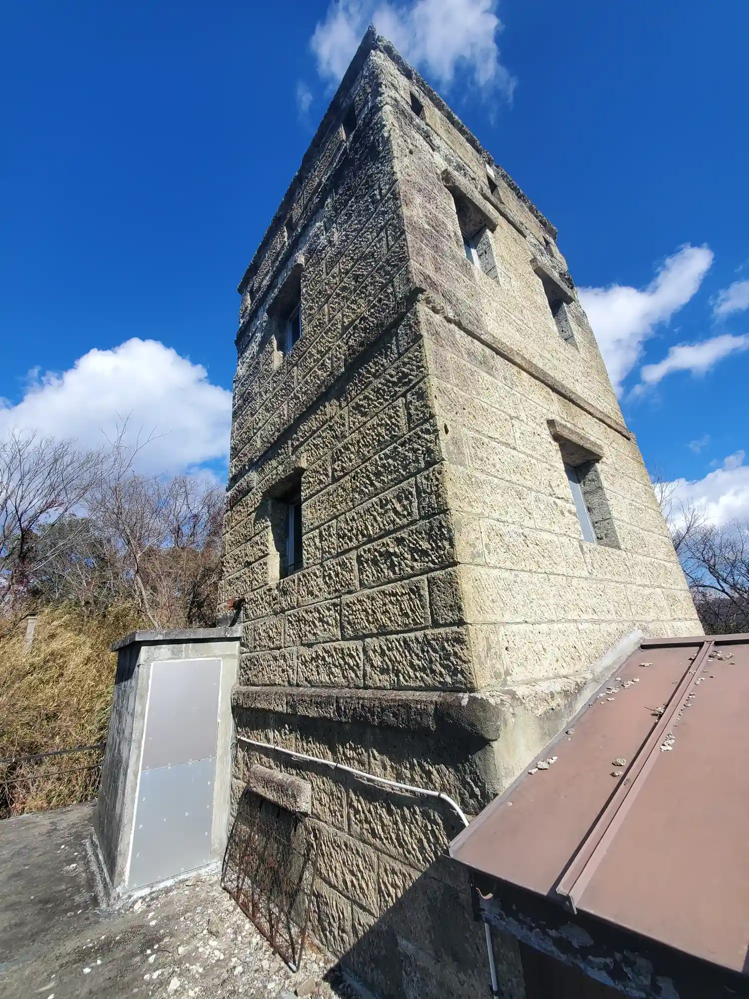 塔の入口は鉄板で完全に塞がれてる