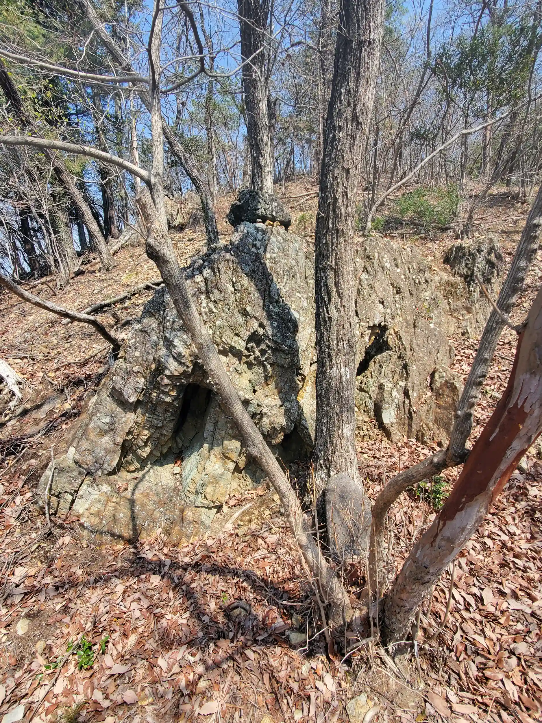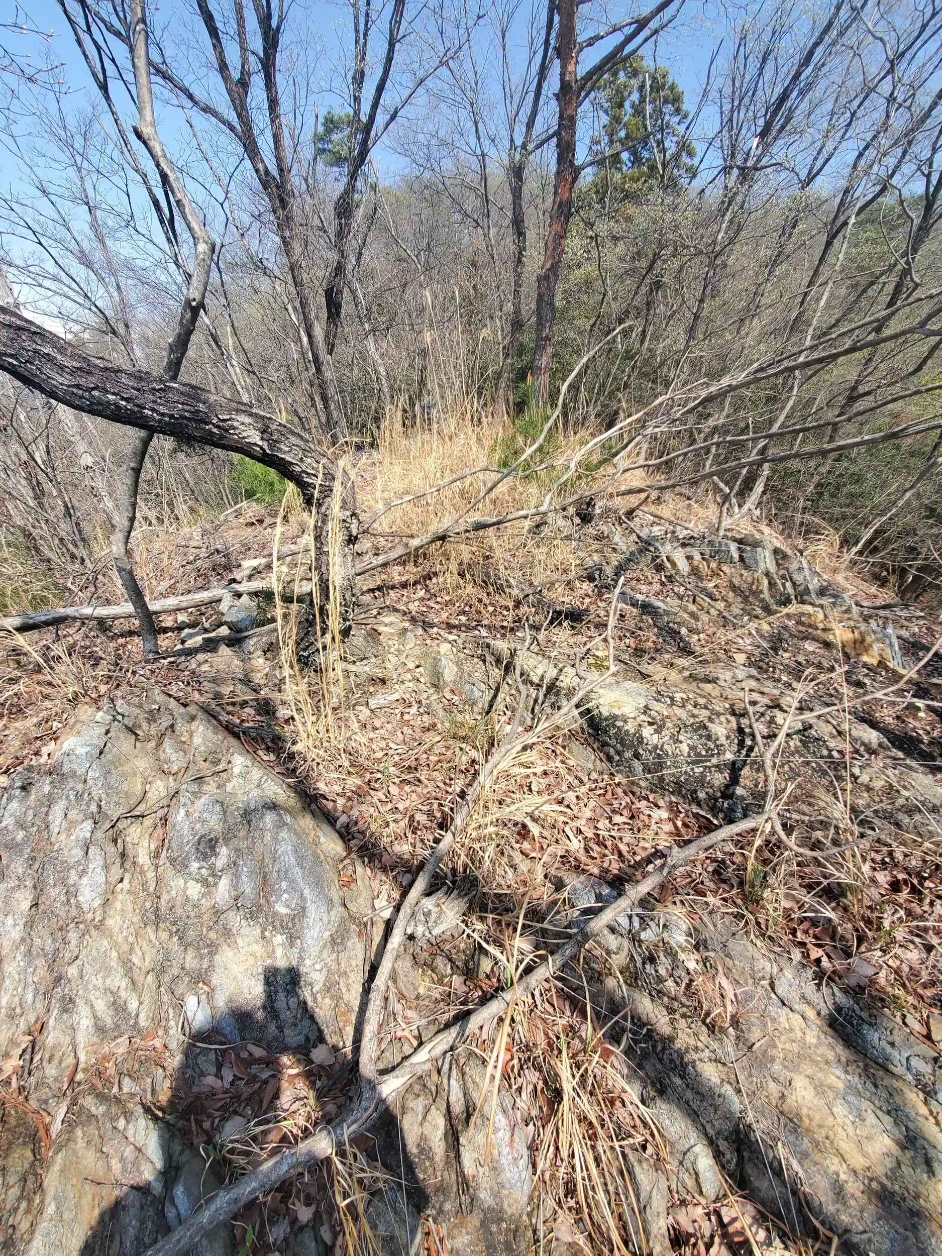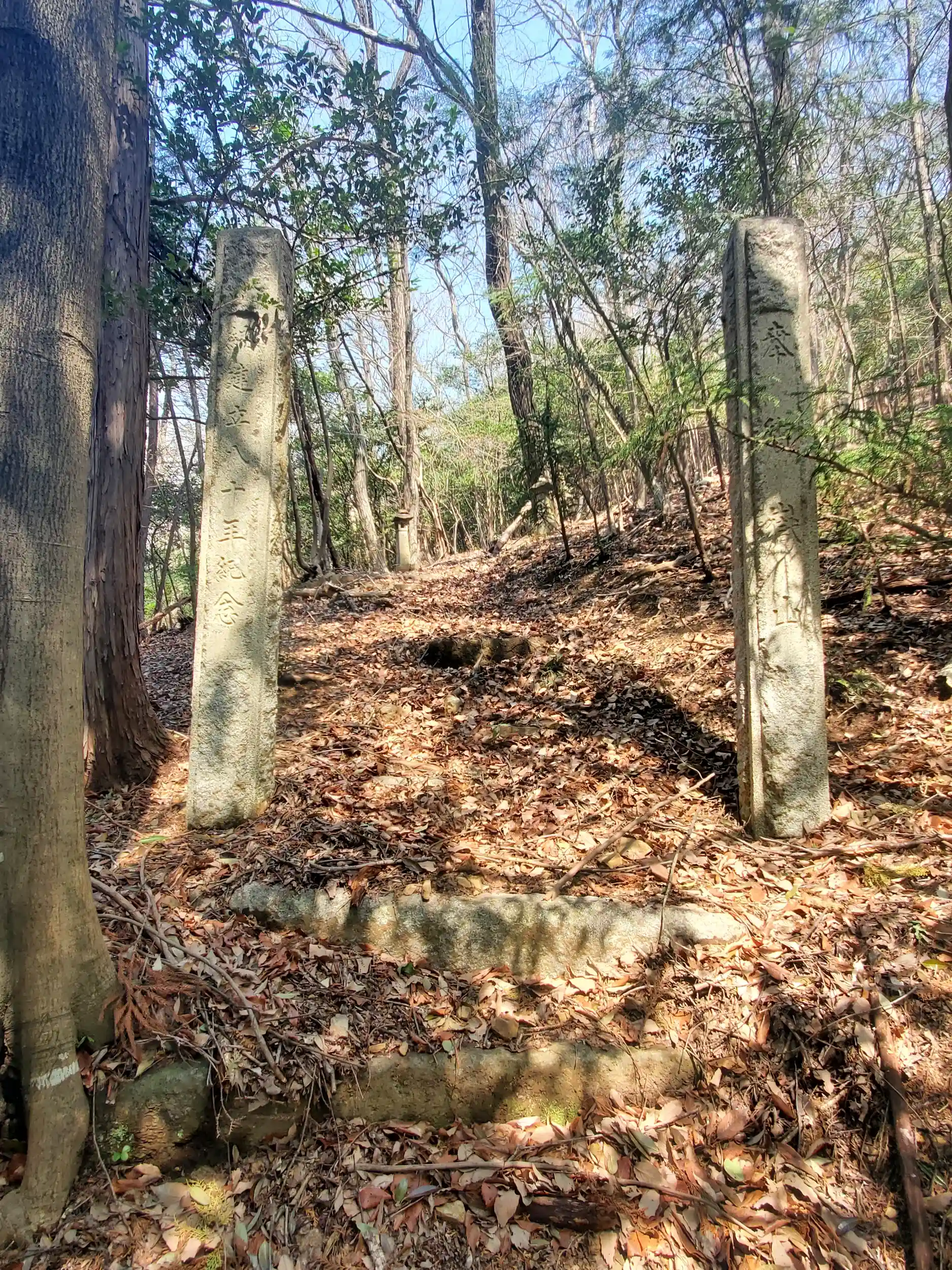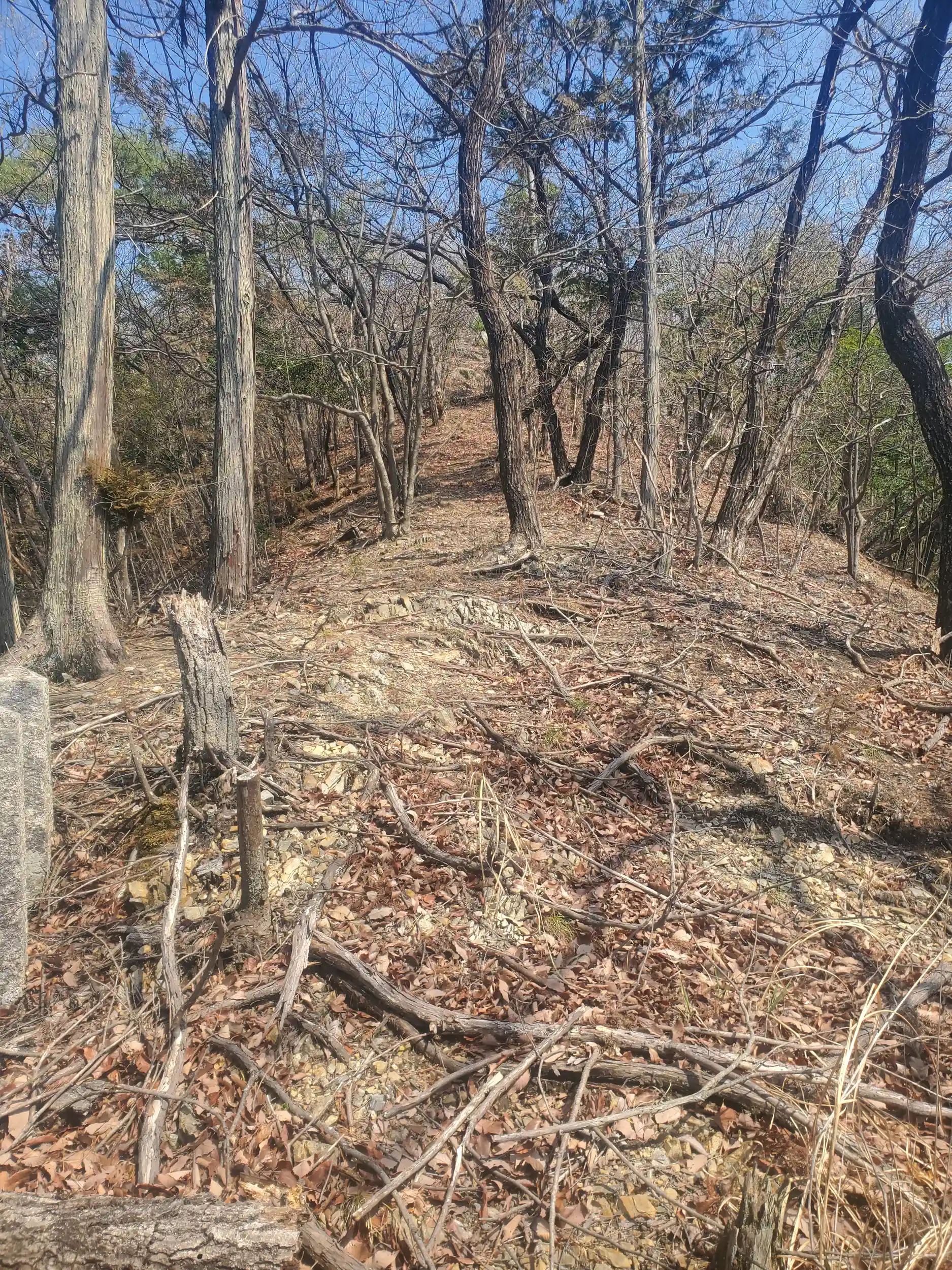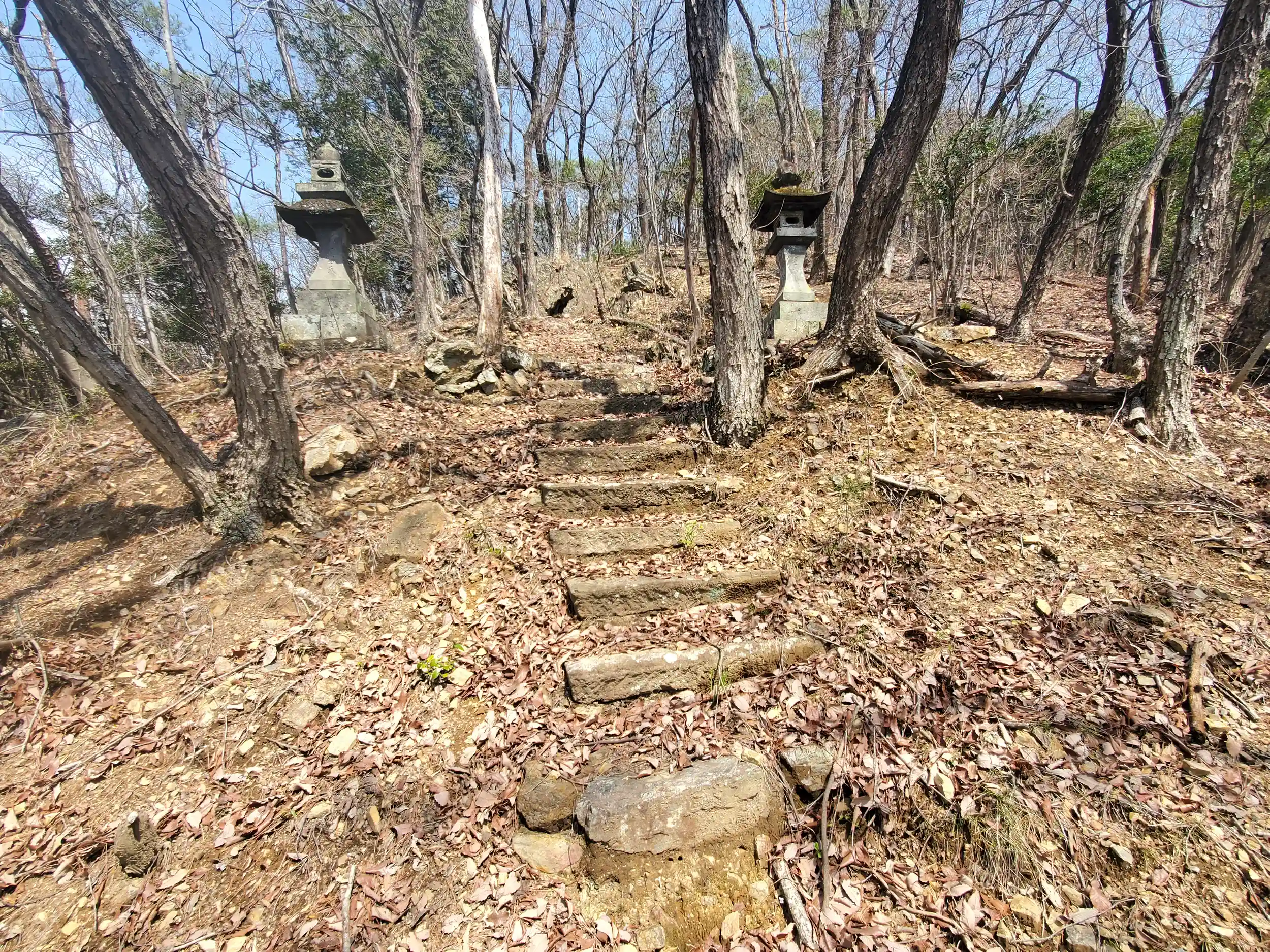 こちらも隣の天道山と同じく落ち葉が厚く積もってるうえ倒木も多かったのですが🍂 山的には御嶽山の方がやや低くなだらかだったのと、こちらは部分的に人の手が入ってて時々石段などもあり、若干登りやすかったです💨