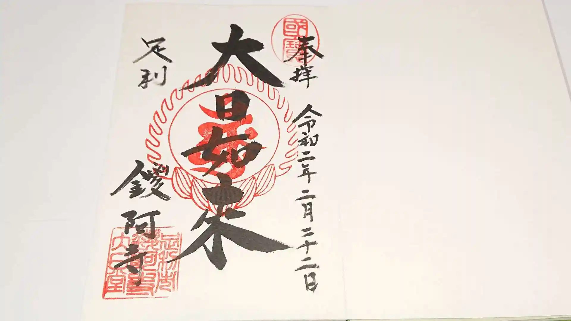 ご本尊の大日如来御朱印を拝受させて頂きました。
