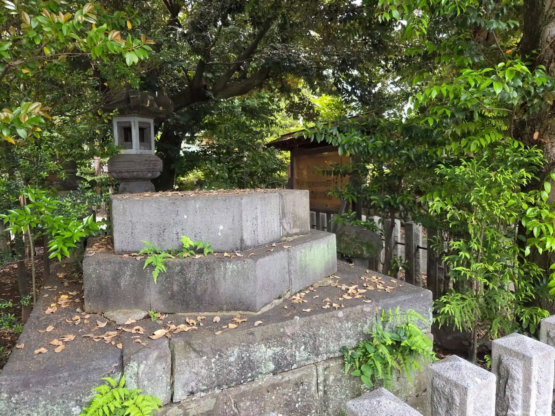 嘉永二年奉納の燈籠台座 平成二十三年(2011)東日本大震災により上部が落下、保存修理し分離保管されています