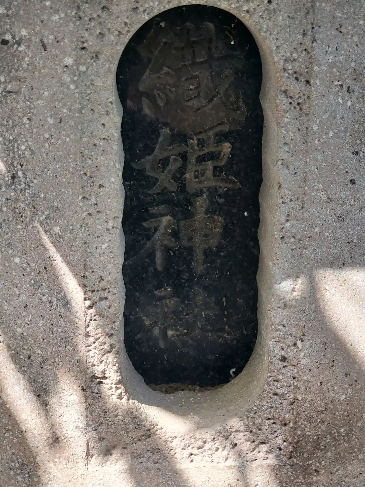 石祠に御影石が埋め込んであって、そこに神名が掘られてる結構凝った造り