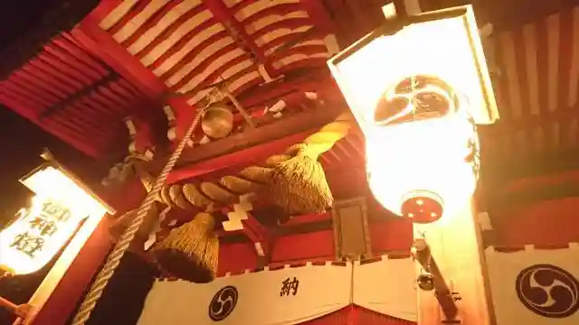 お祭りの日が近いと夜も提灯がついていることがあります。