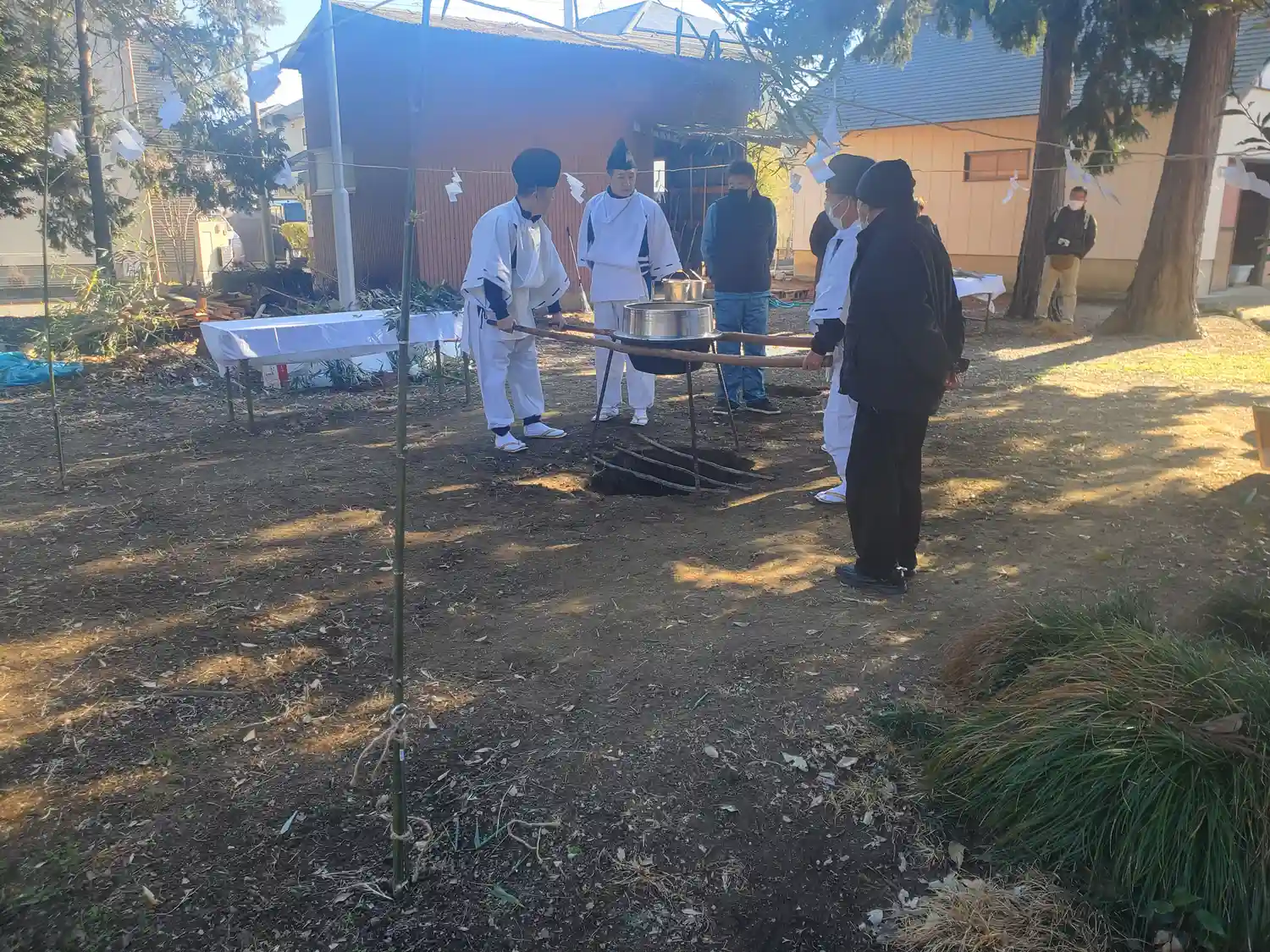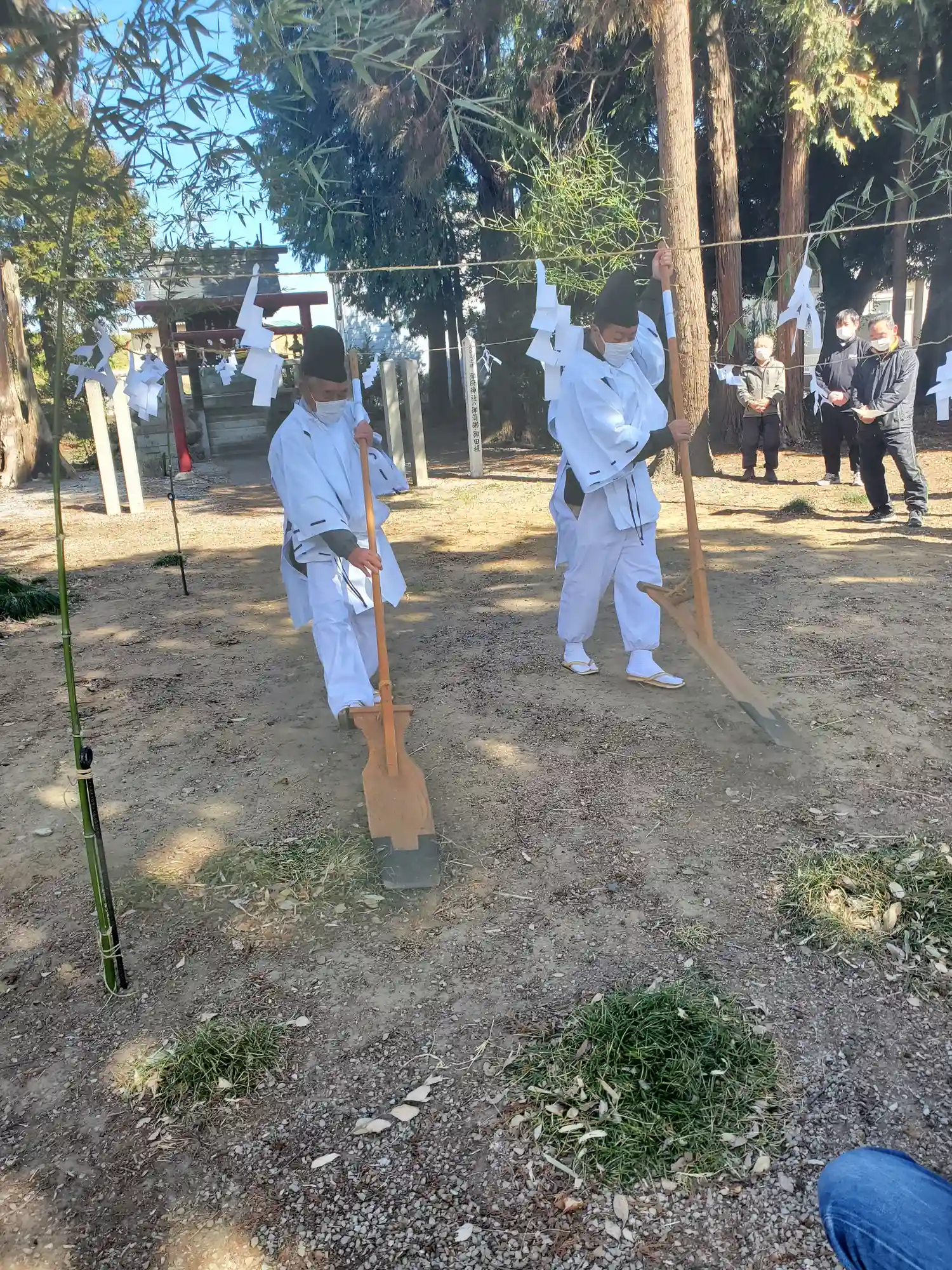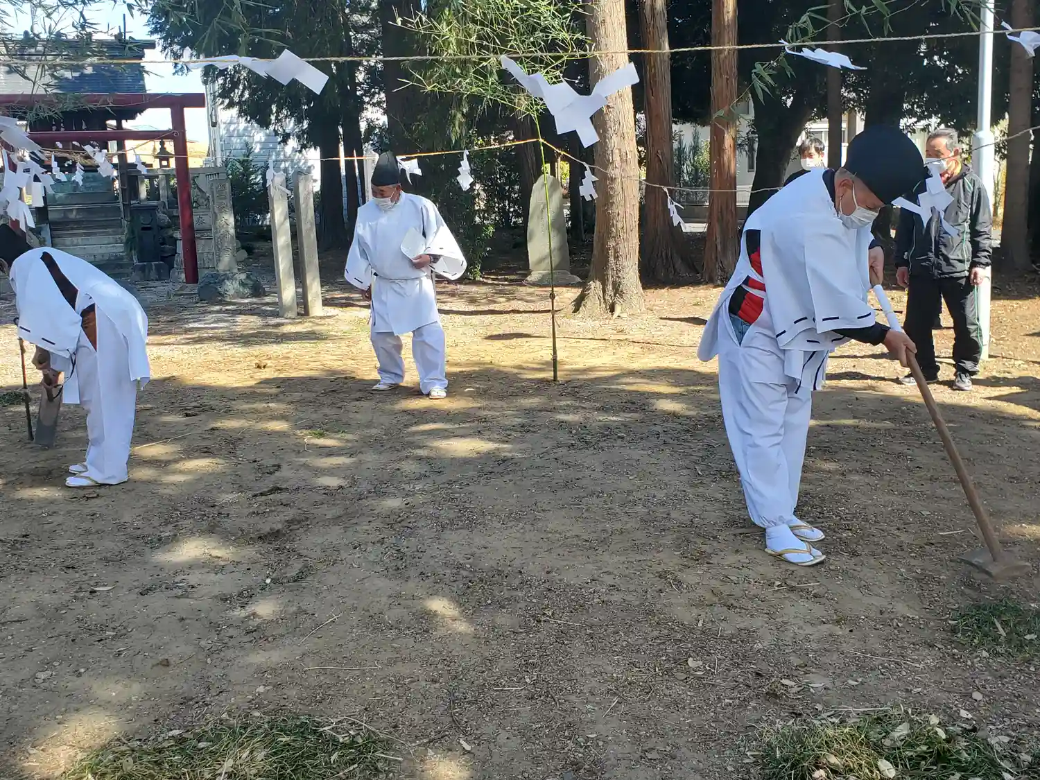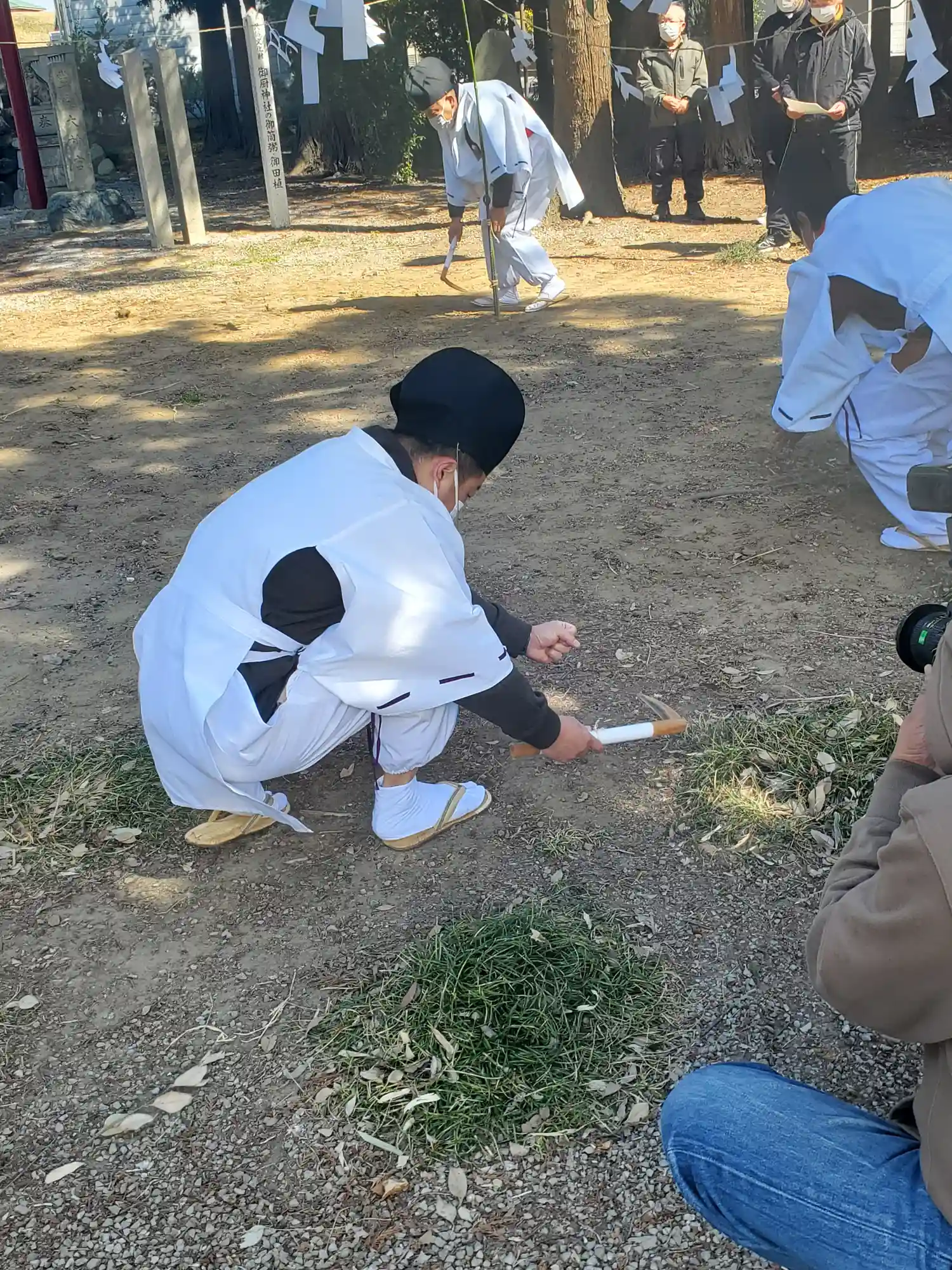 ちょうどお正月でご近所さんが集まり神事中