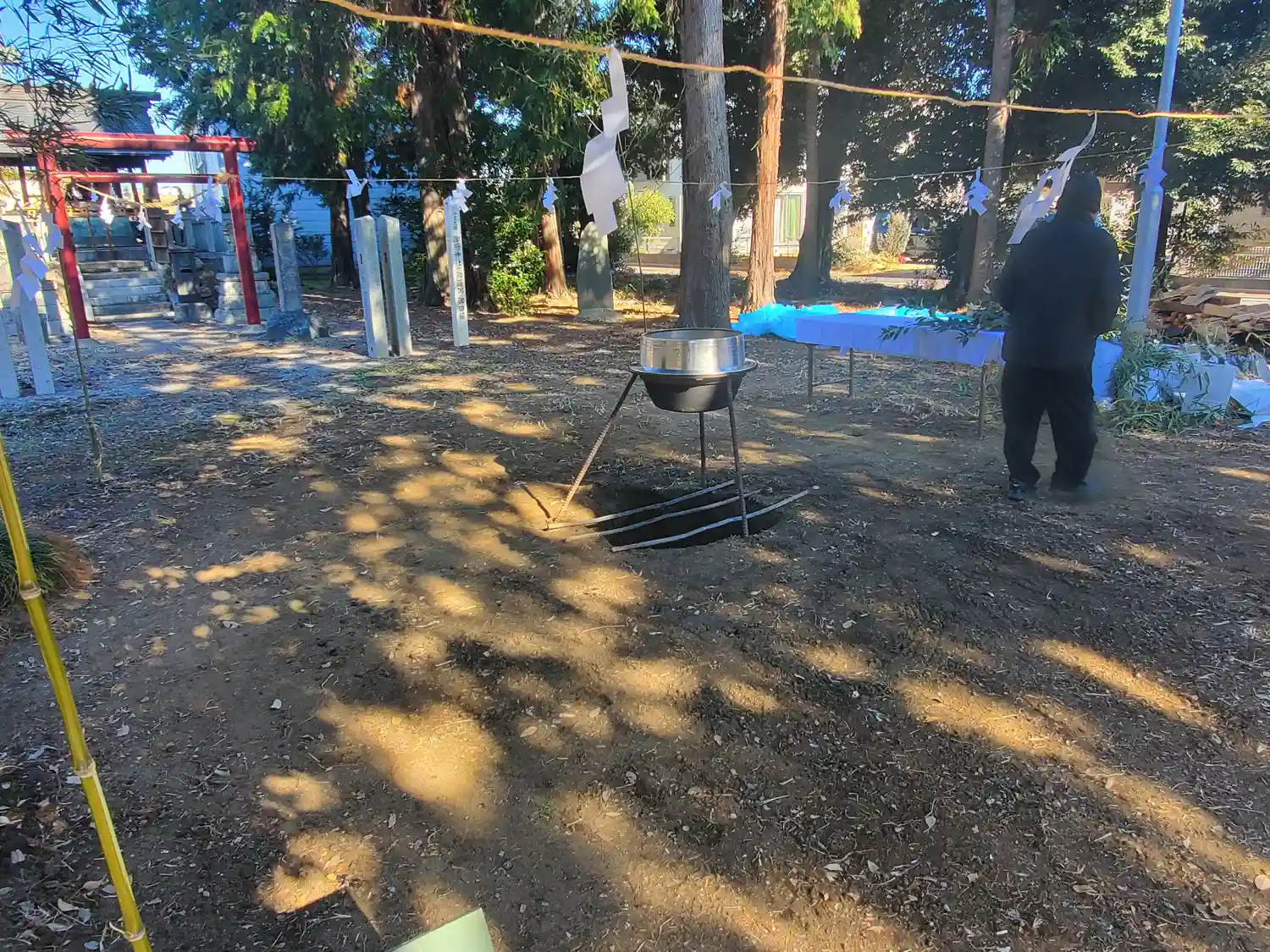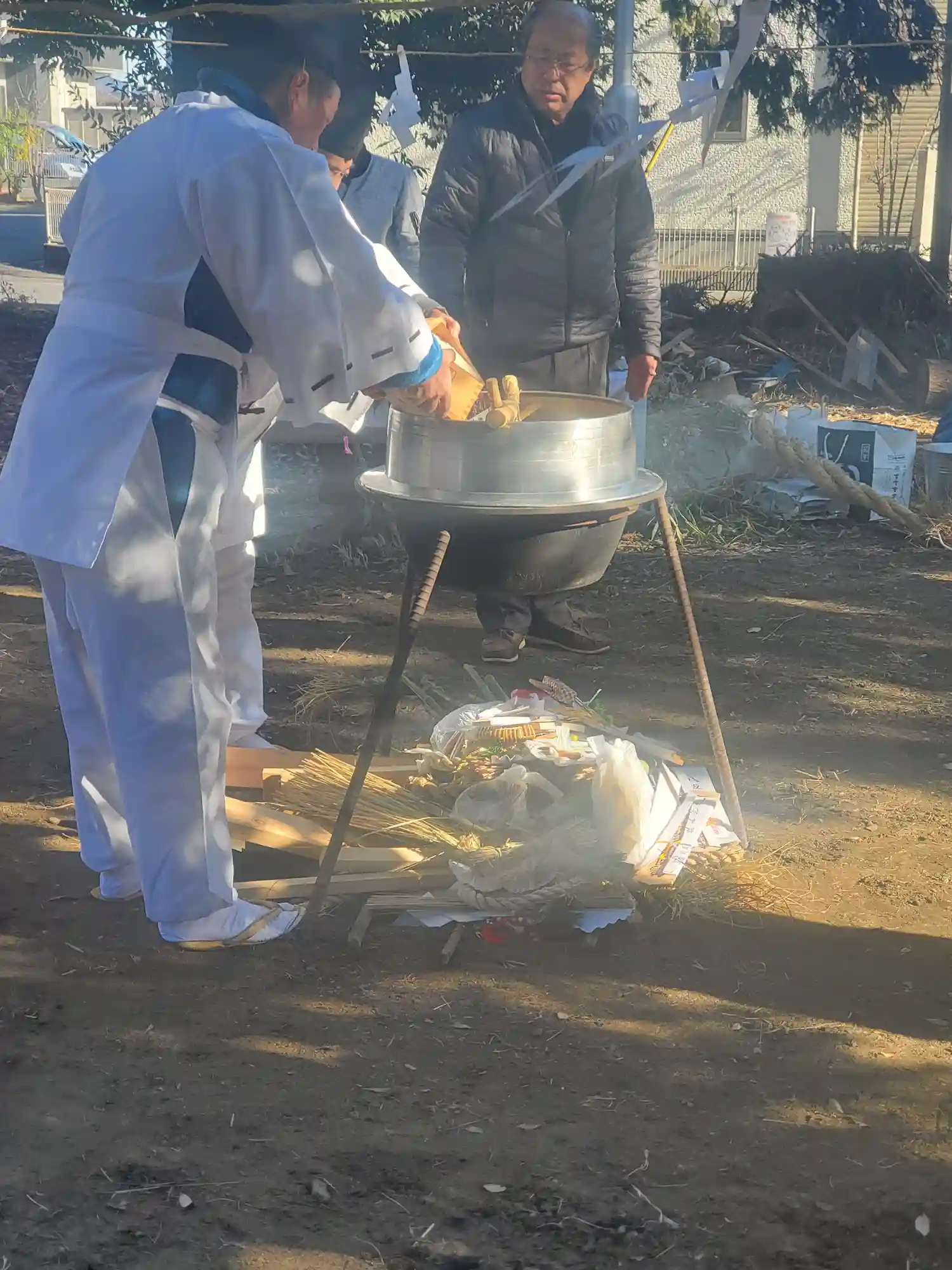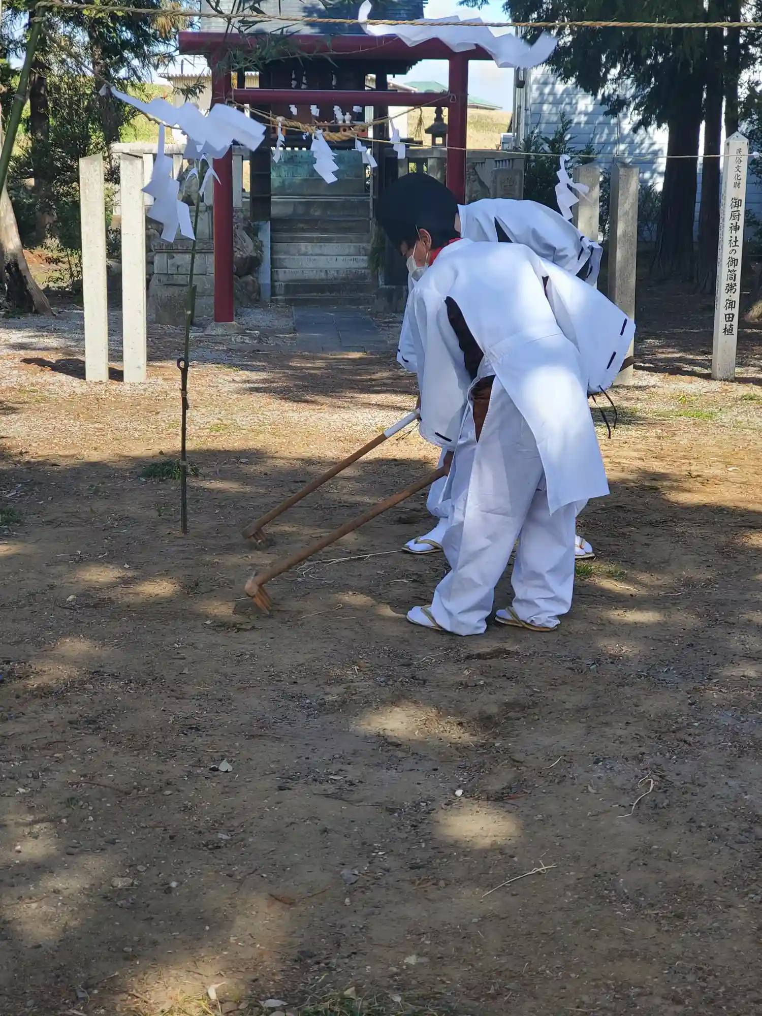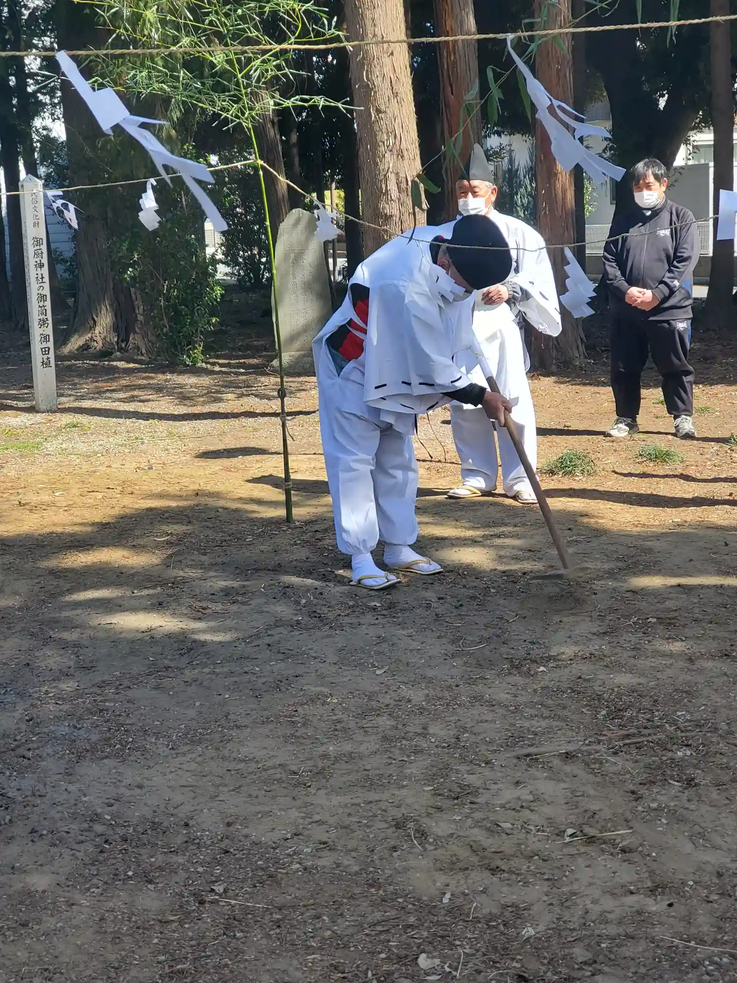 ちょうどお正月でご近所さんが集まり神事中
