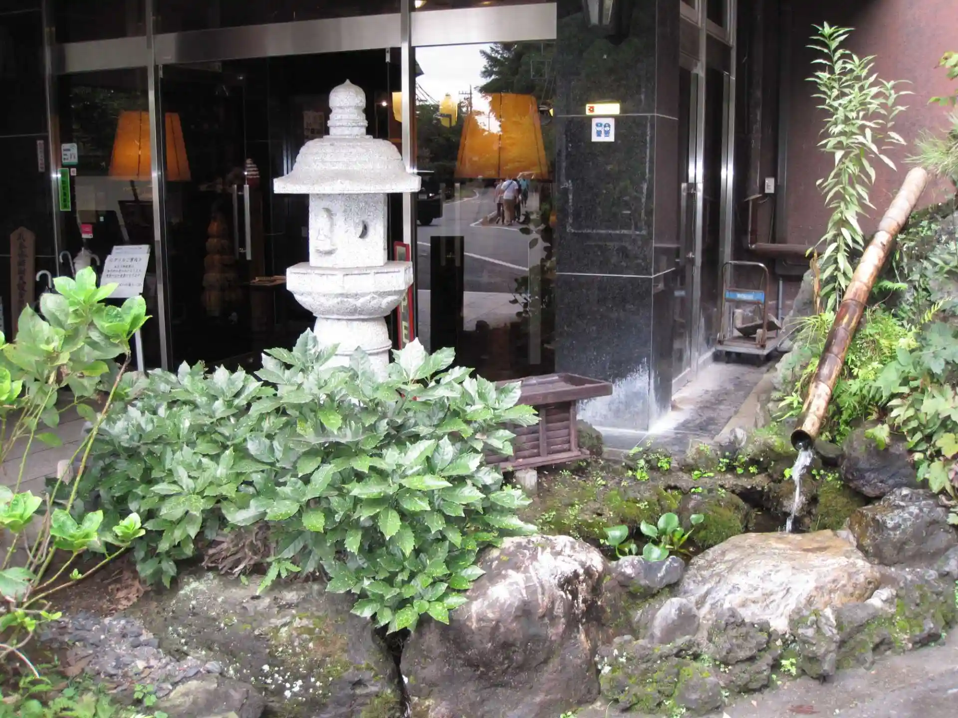 ホテルのエントランスの湧水をマイボトルに入れて無料で持ち帰り出来ます。