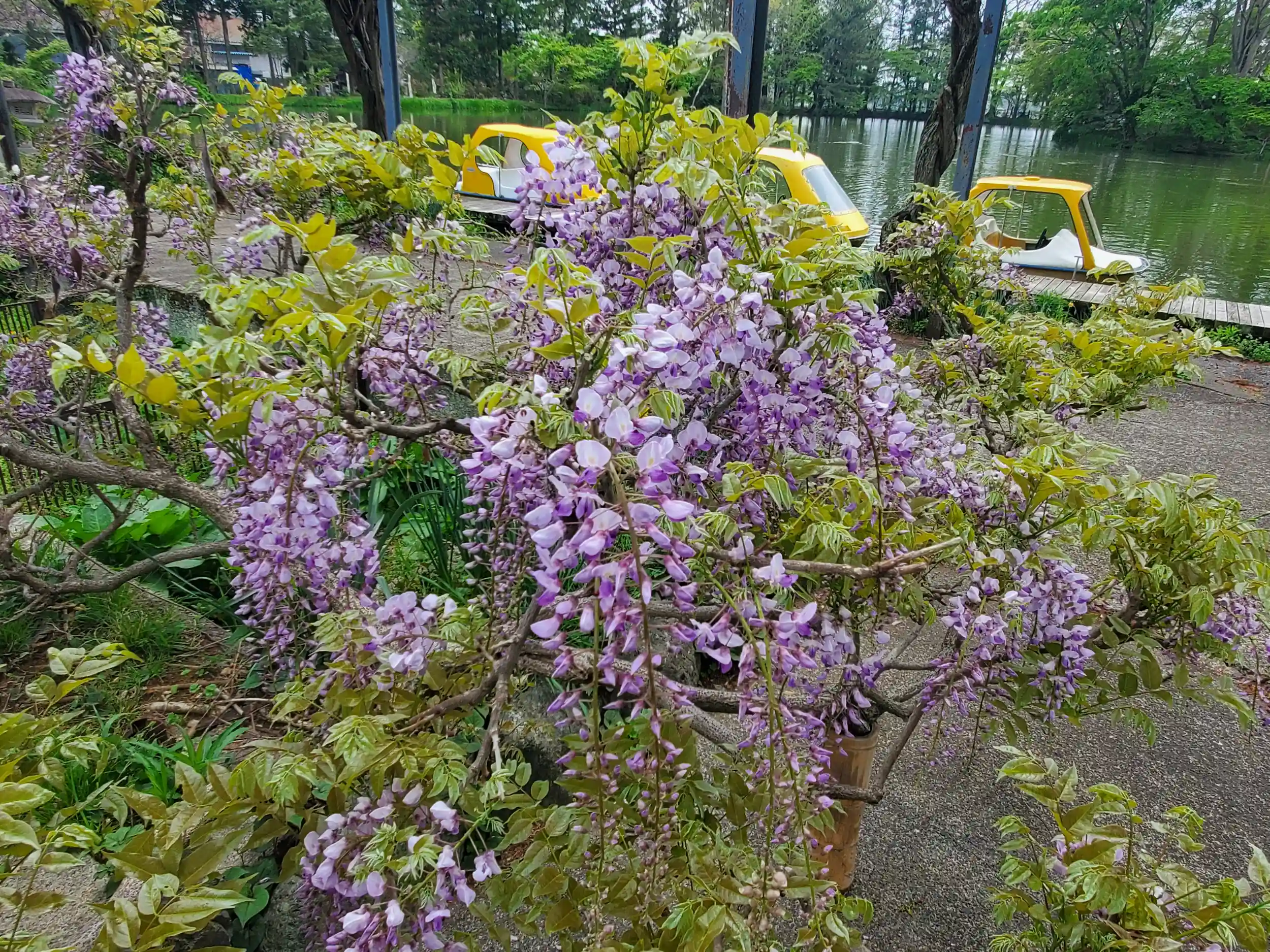 マス釣り堀の先には別の池があり、こちらは藤棚になってる