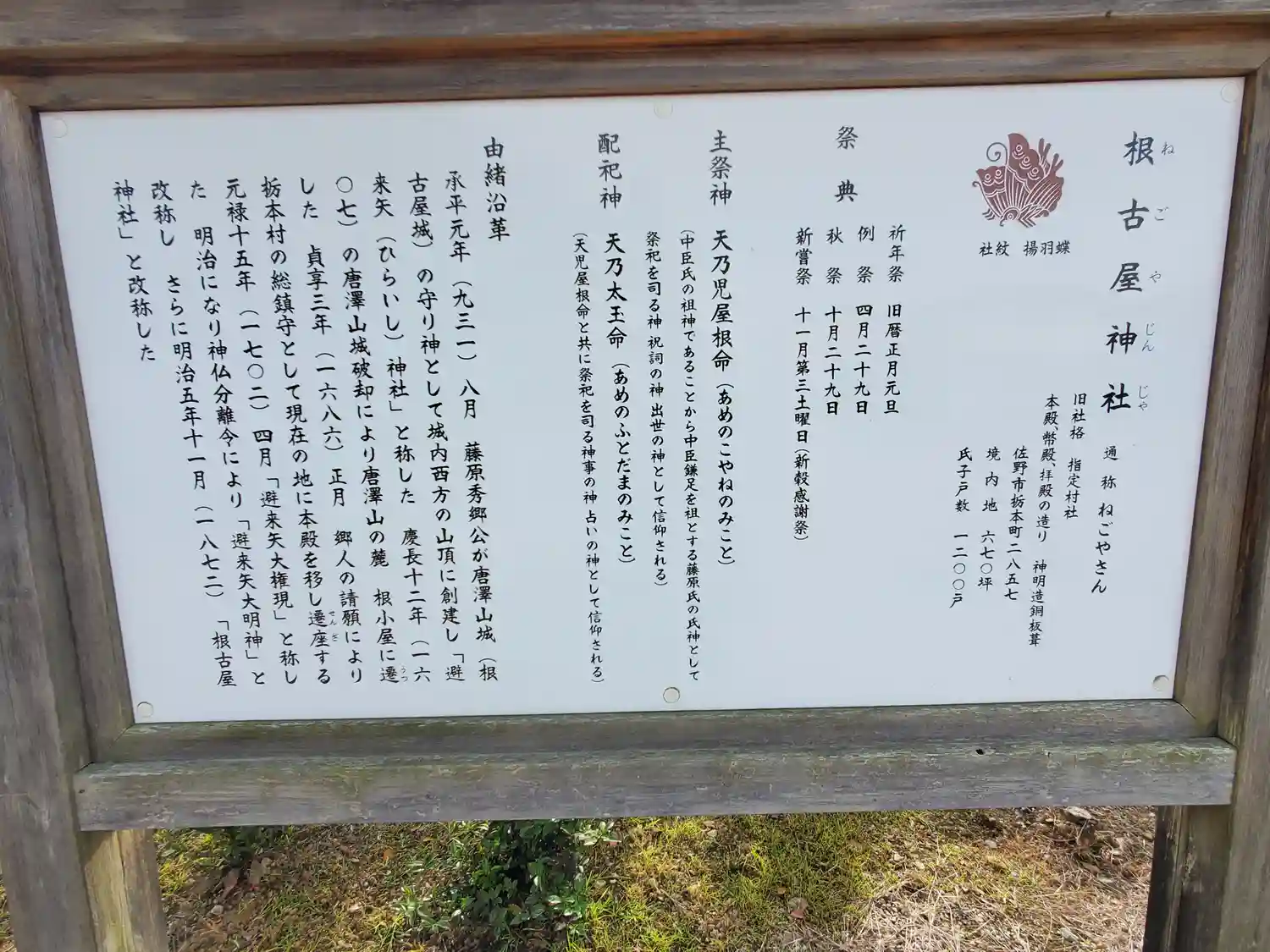 主祭神は天乃児屋根命