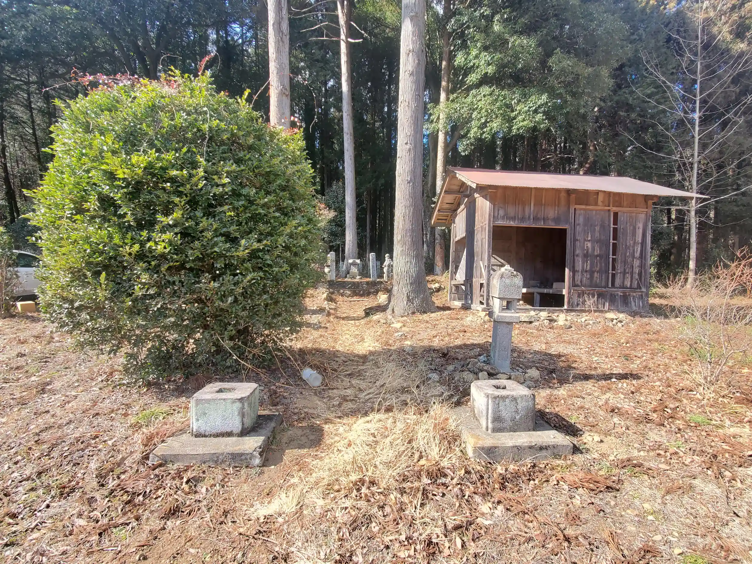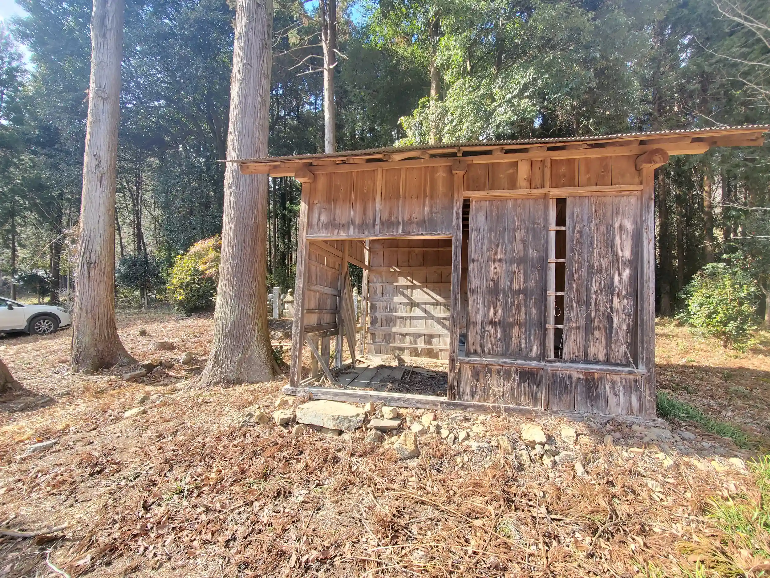 事前に集めた情報では神社と五輪塔の写真しかなかったのですが、意外なことに前に古い木造の建物もあった⁉️