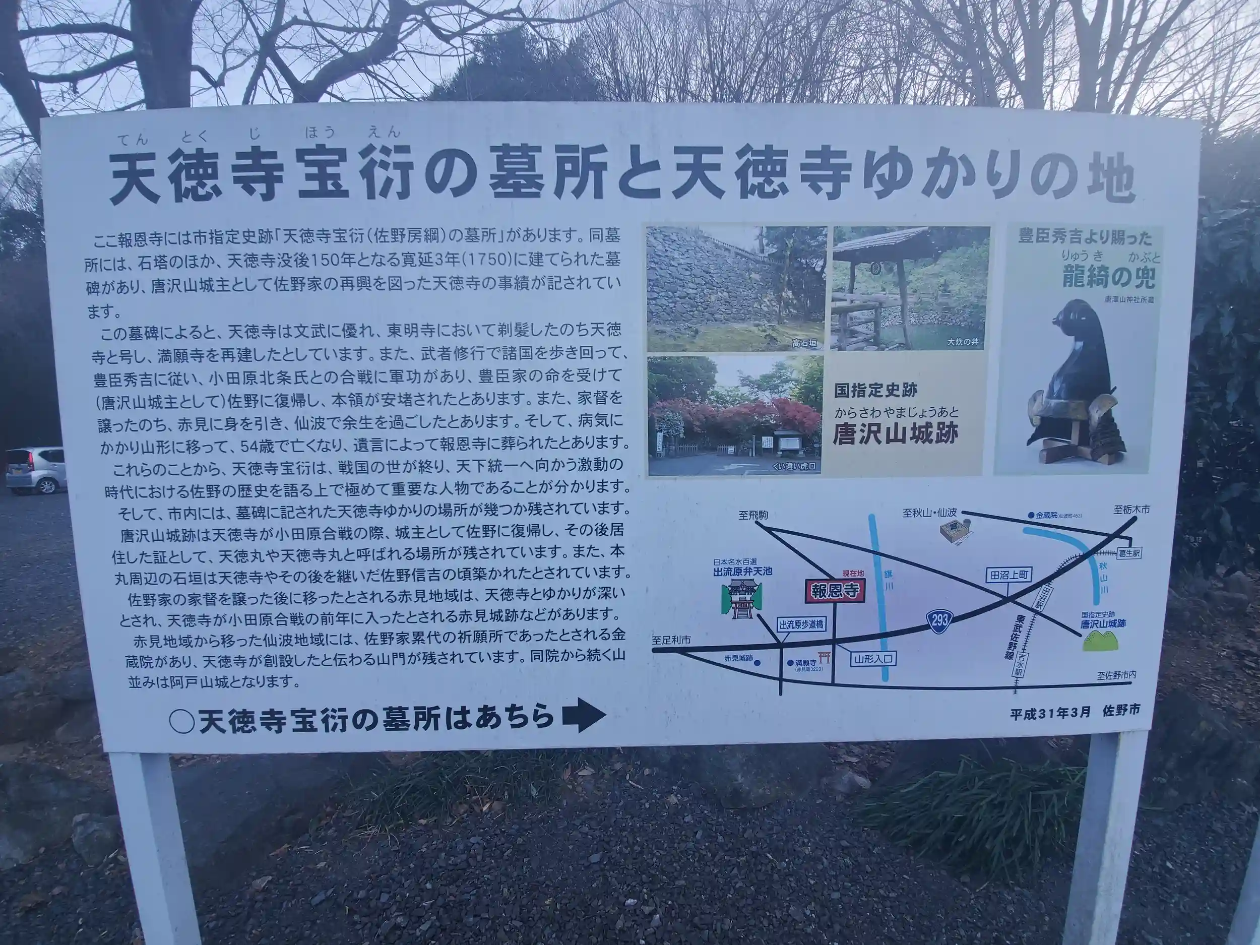 ここは佐野氏再興の武将、天徳寺宝衍(ほうえん または天徳寺了伯との法号もあり)こと佐野房綱の墓所があり、前々からちょっと行ってみたいと思ってました。