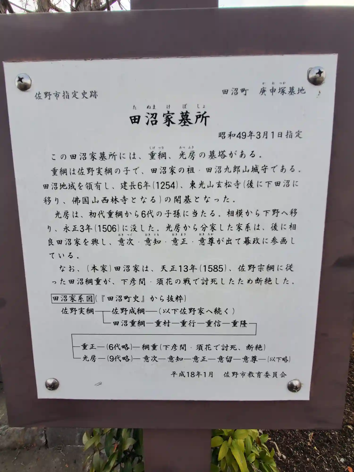 意次の頃の田沼家は、紀州とか相良に行ってたので旧田沼町とは直接の繋がりはないのですが、やはり観光向けにムリヤリ系図に載せてあるw