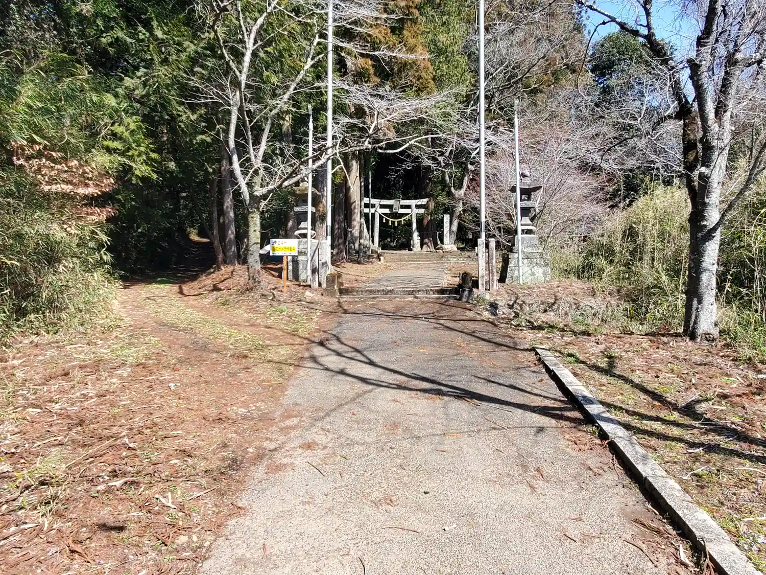 ここからは徒歩で少し登ったところに神社
