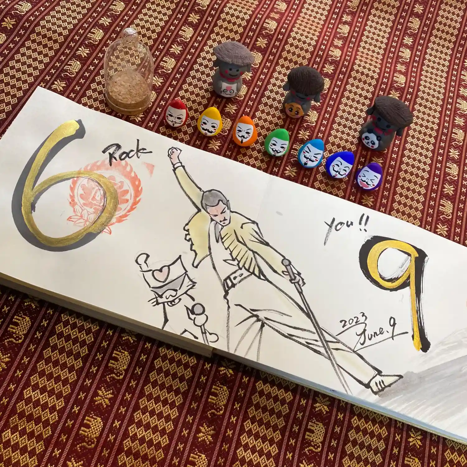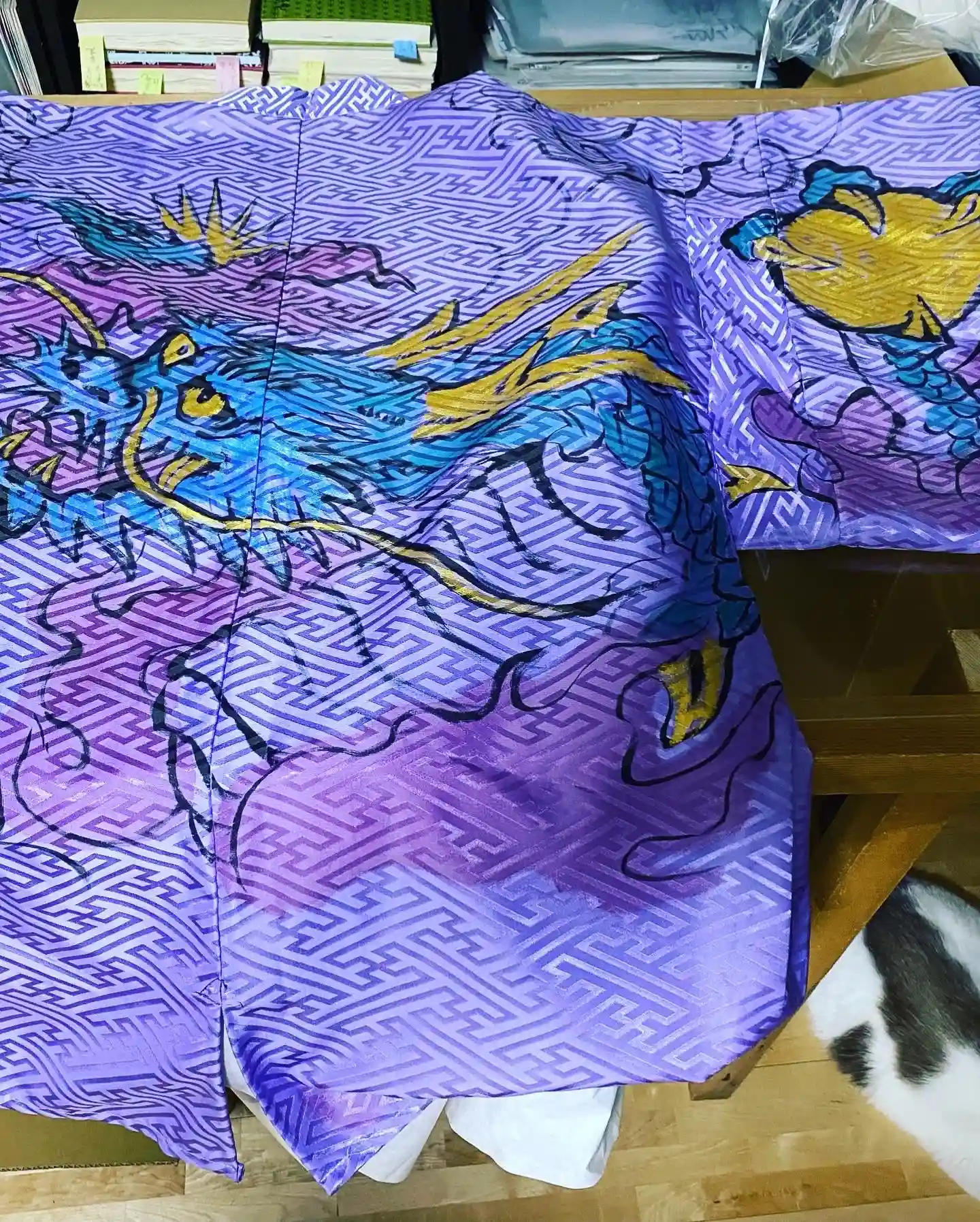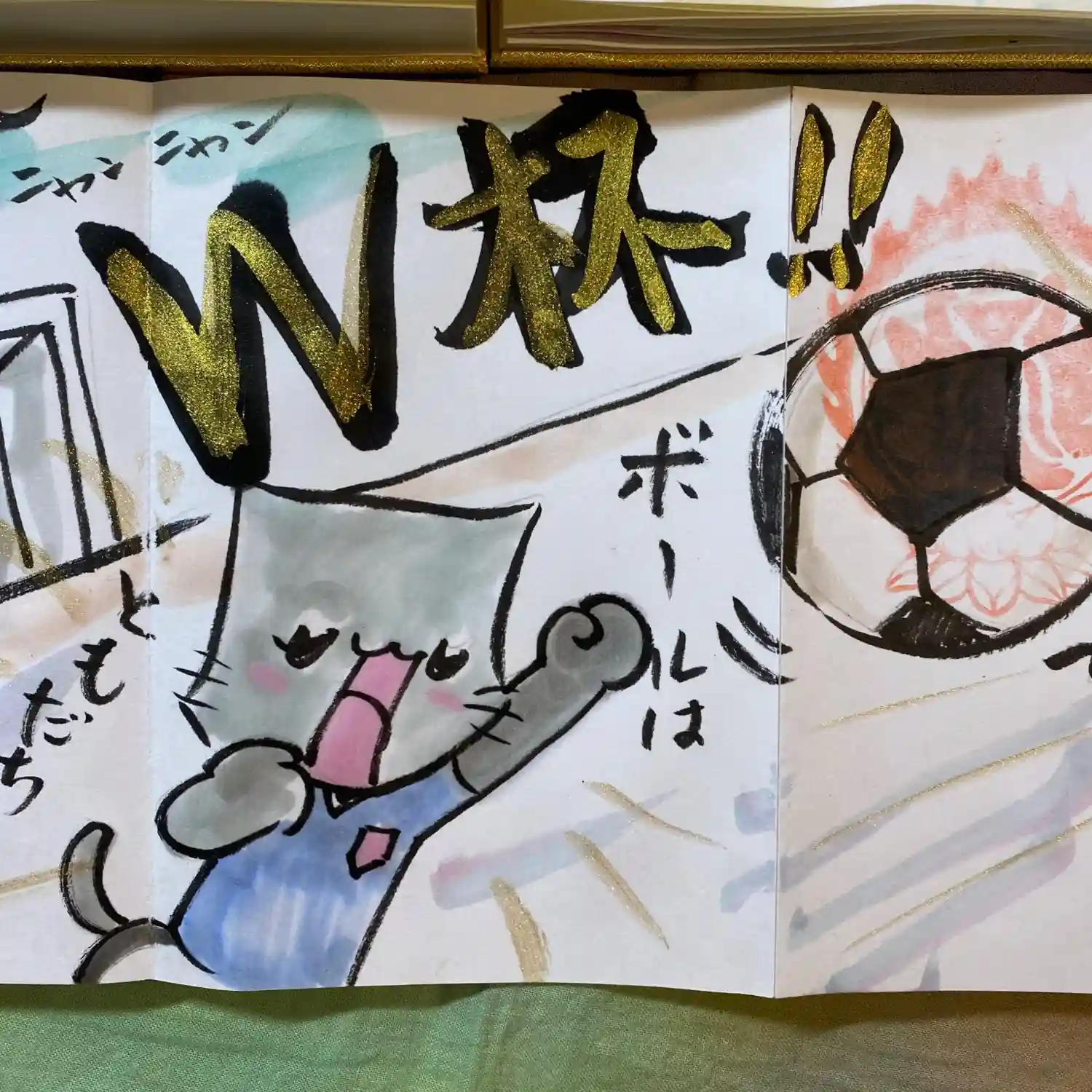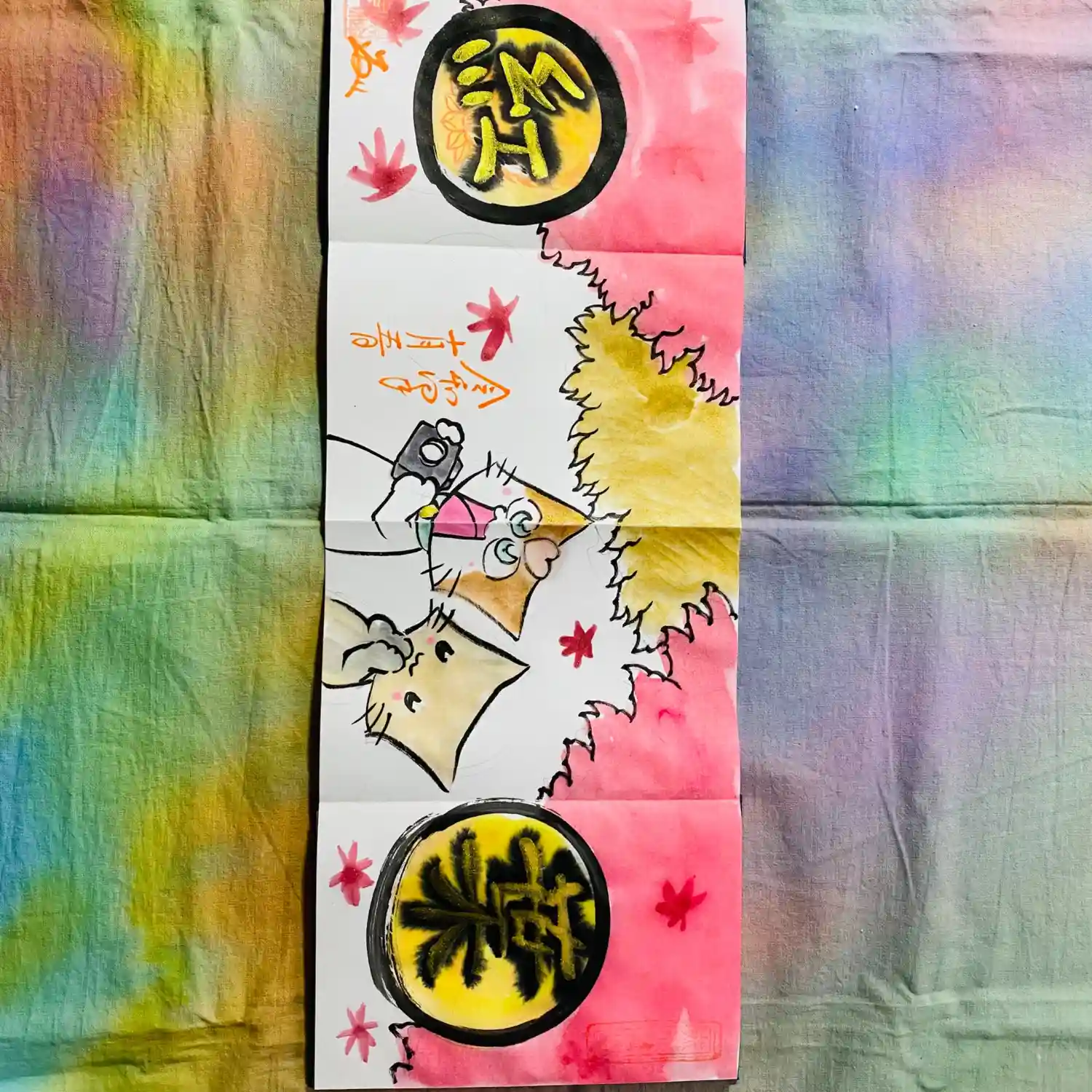 先月末に登場した八大天狗の参「比良 治郎坊」大判の御朱印帳の2面から4面まで対応しております。うちわは夏限定の福猫うちわです。