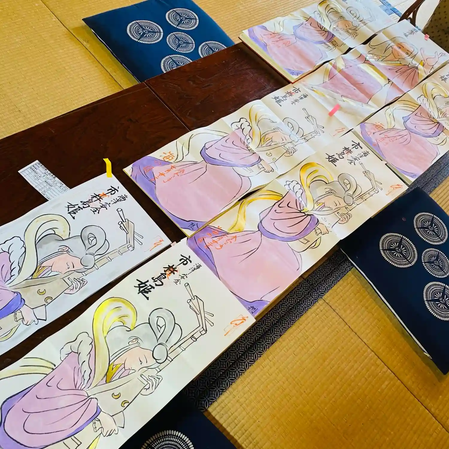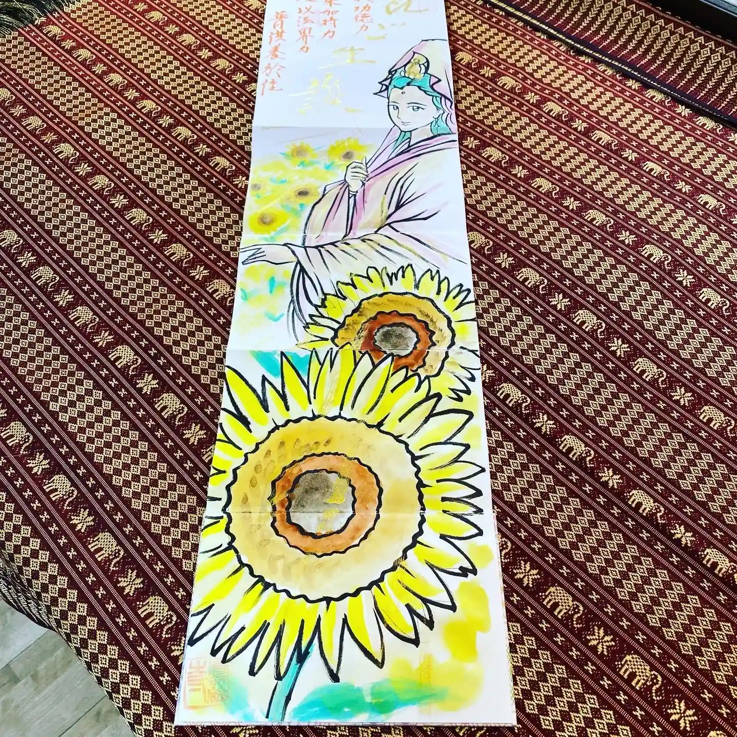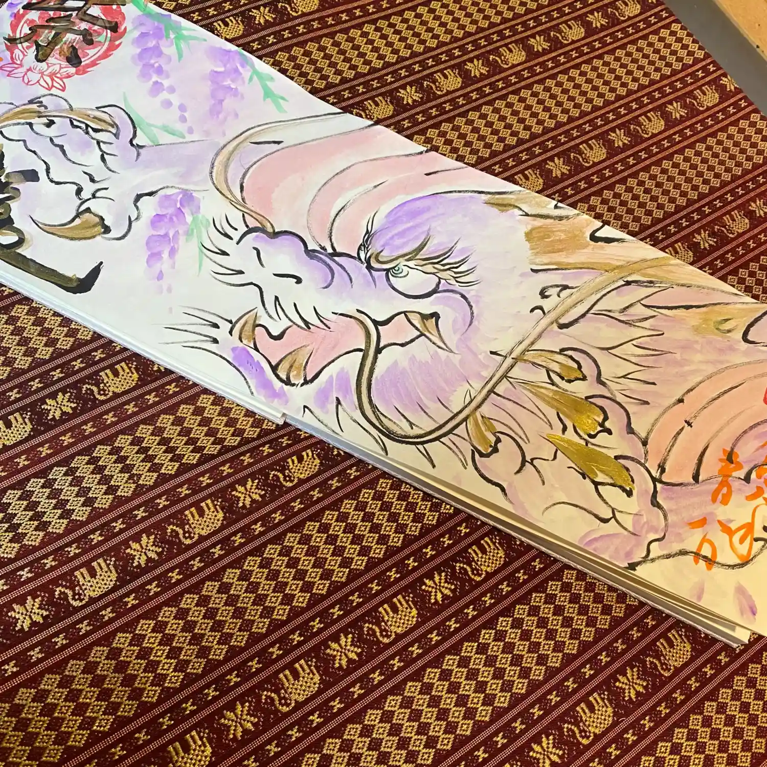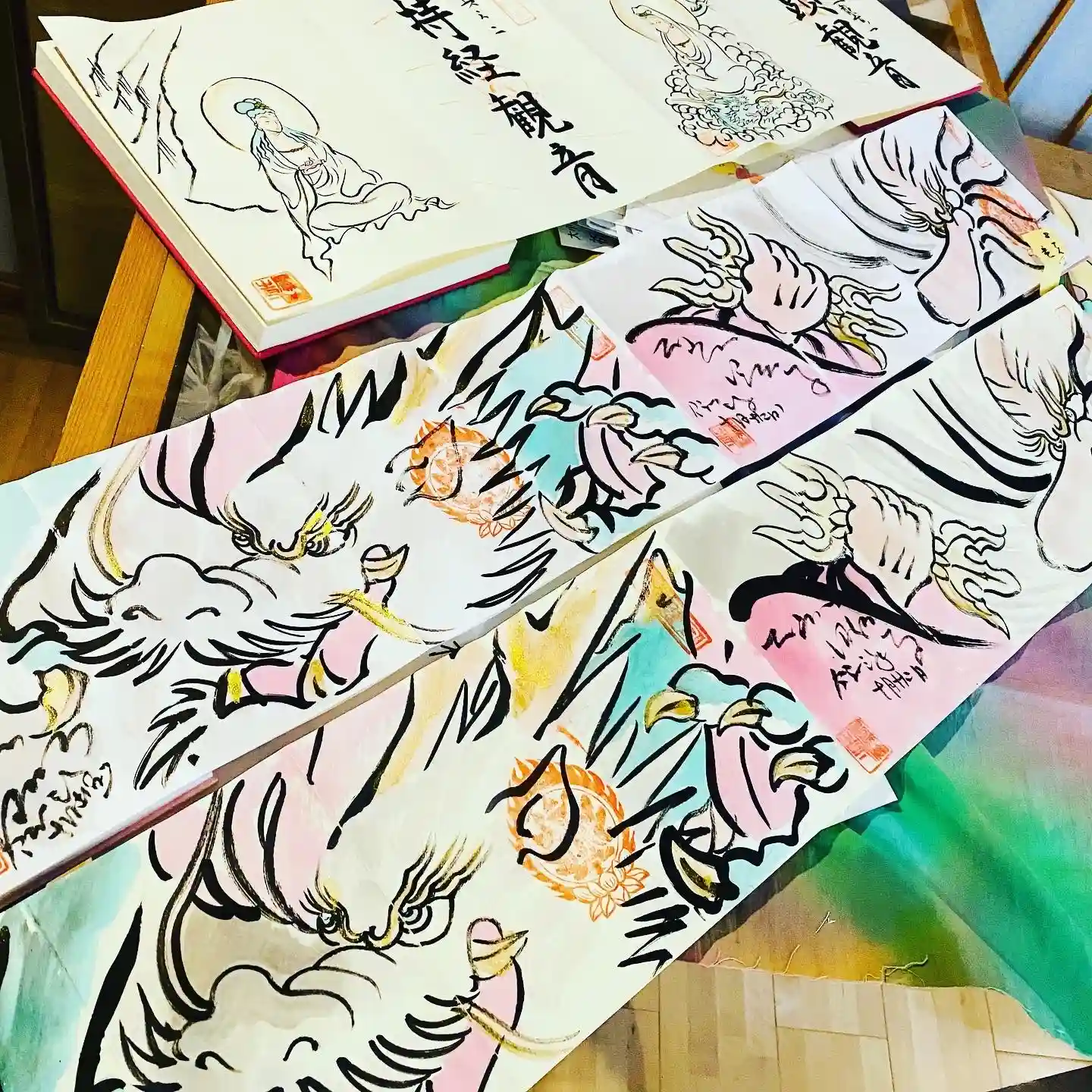 写真は宮城県の山元町のホールで、1日美術館が行われた時の様子✨鳳仙寺の御朱印帳も展示して頂きました✨奥には小松美和さんの作品が見えます✨一流のアーティストさん達の作品の末席に✨