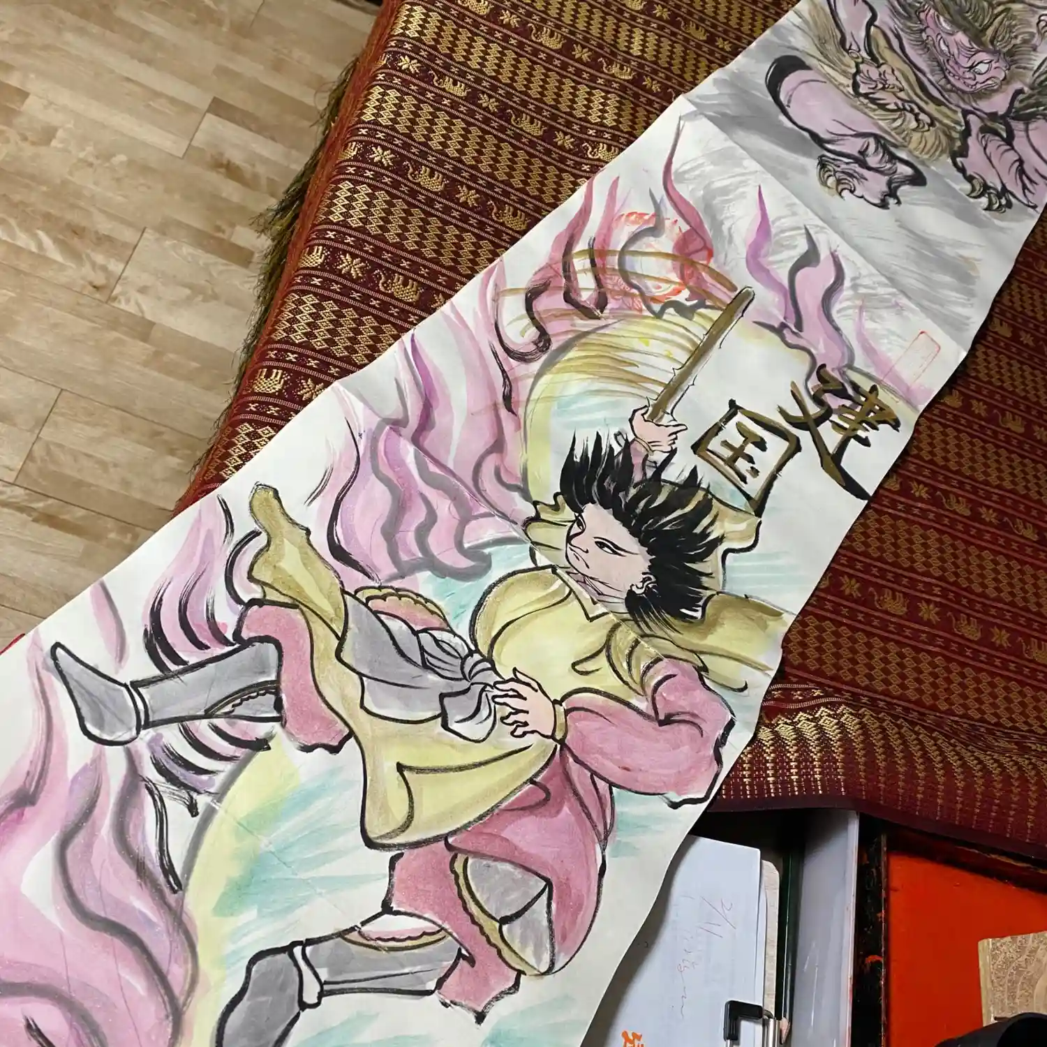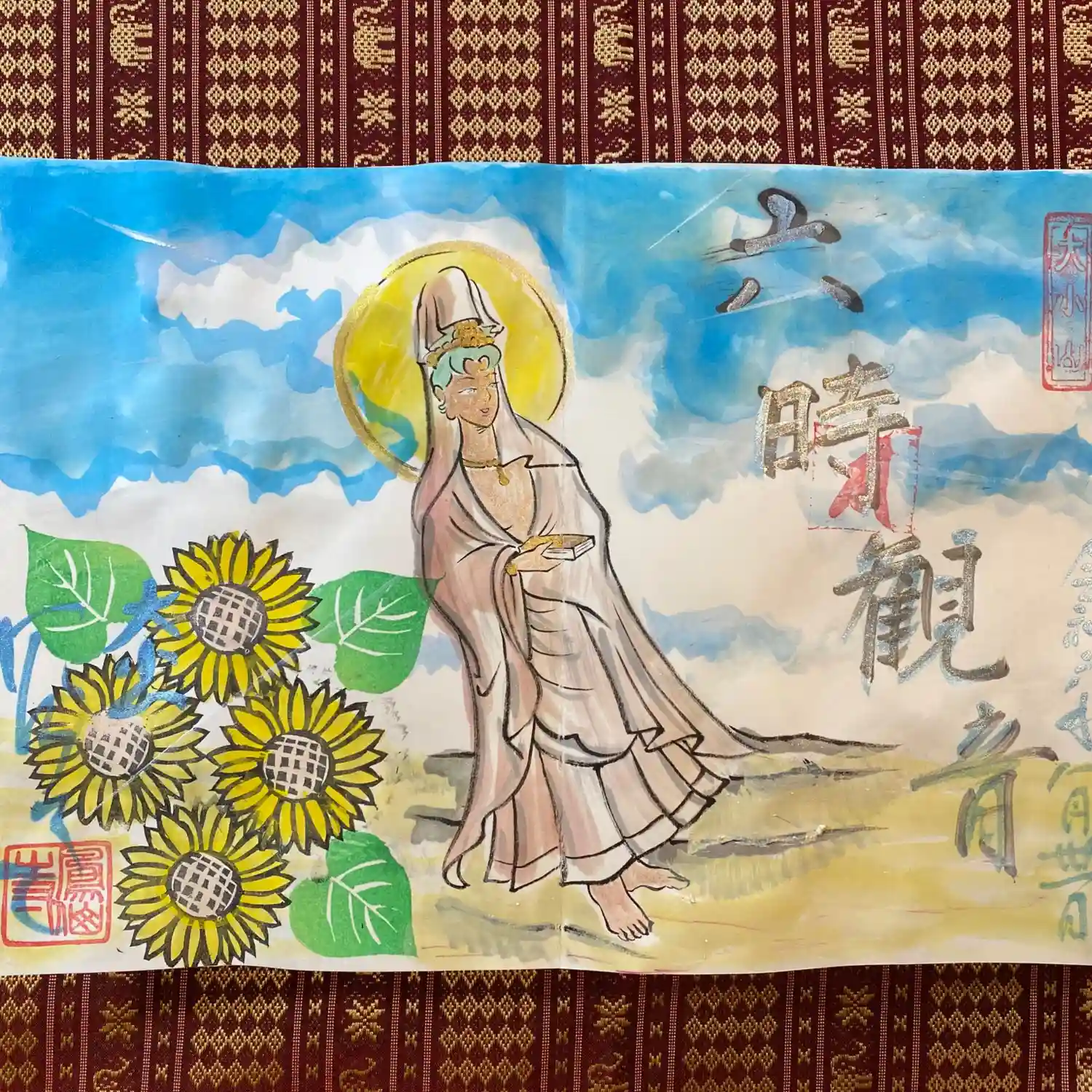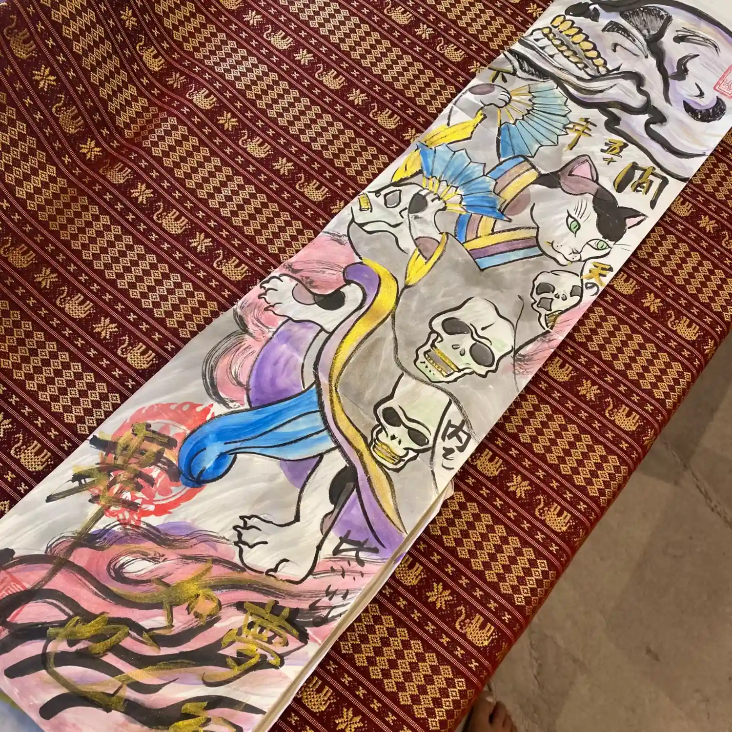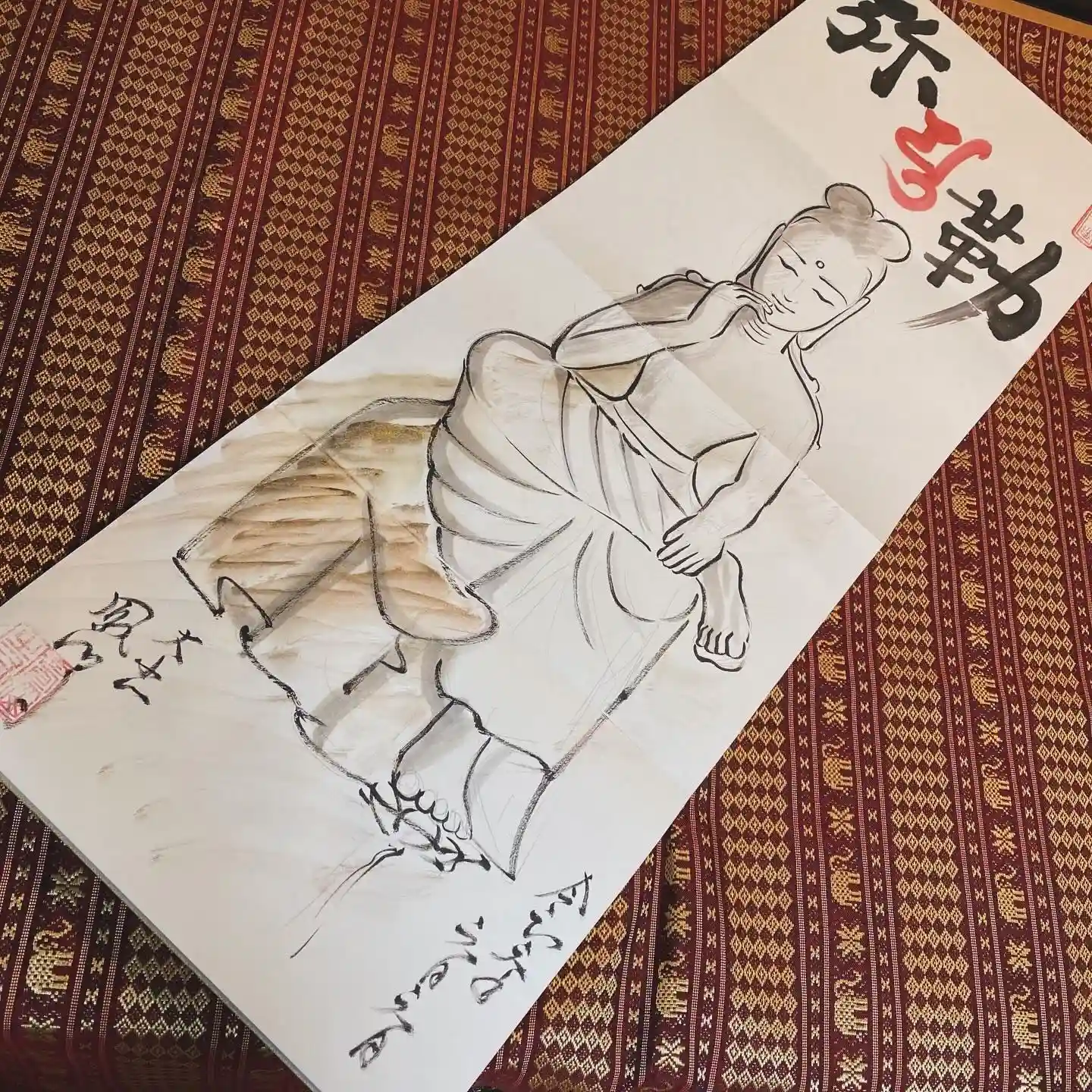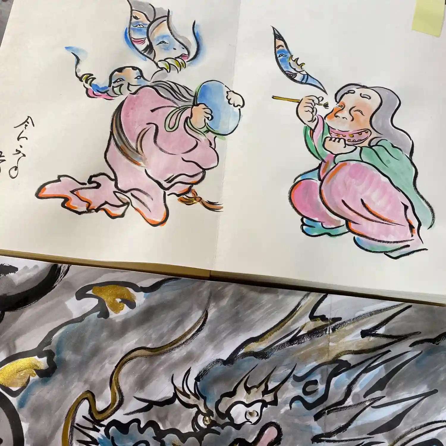 写真は宮城県の山元町のホールで、1日美術館が行われた時の様子✨鳳仙寺の御朱印帳も展示して頂きました✨奥には小松美和さんの作品が見えます✨一流のアーティストさん達の作品の末席に✨