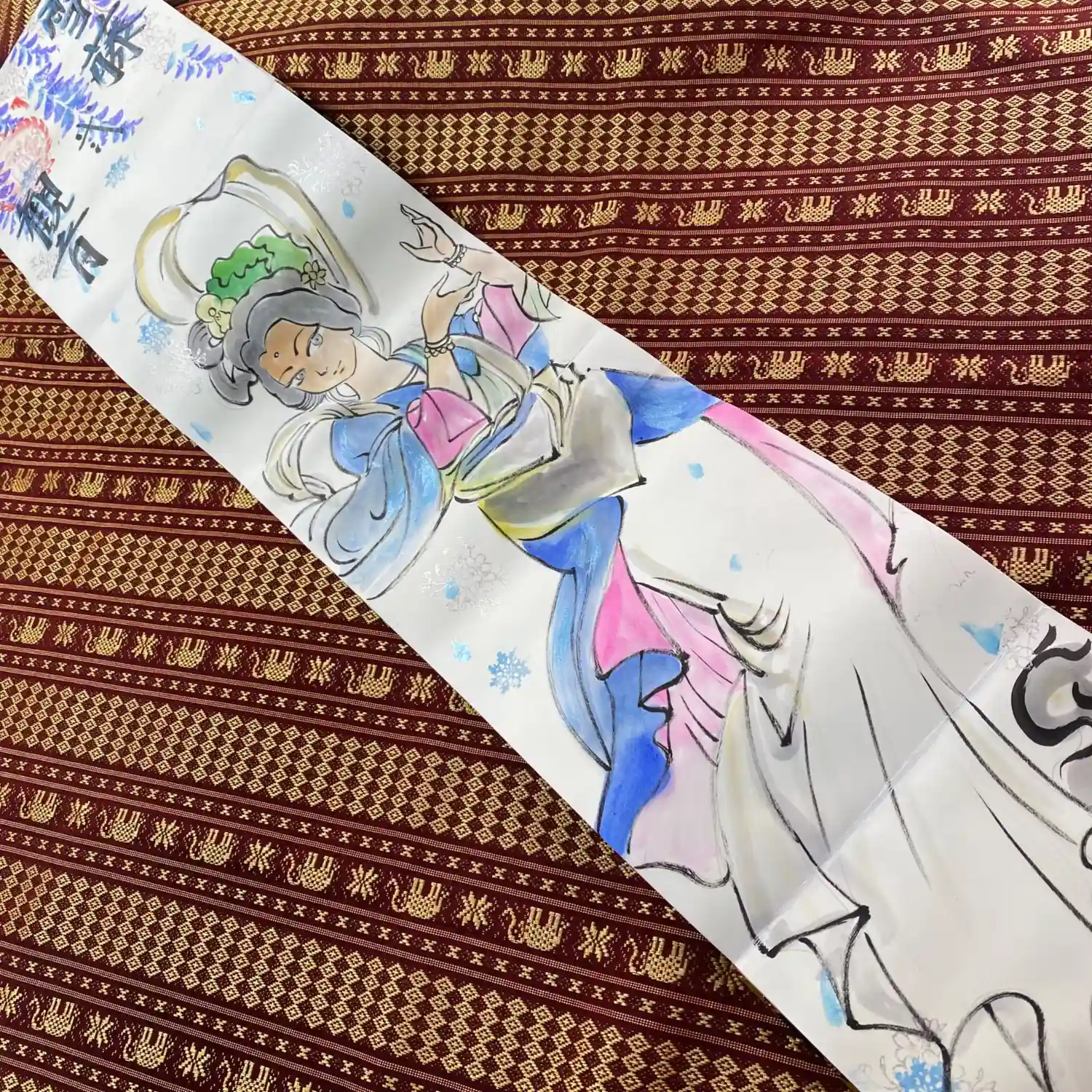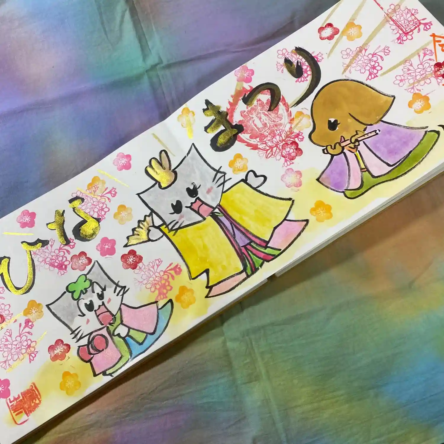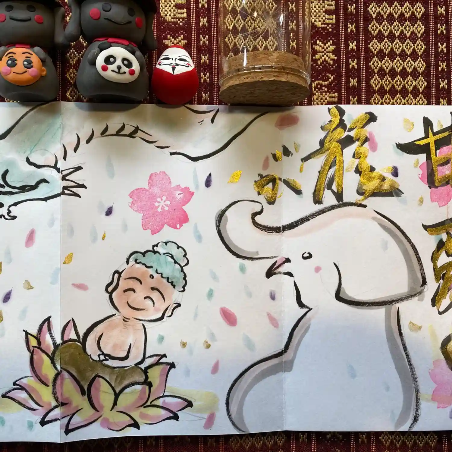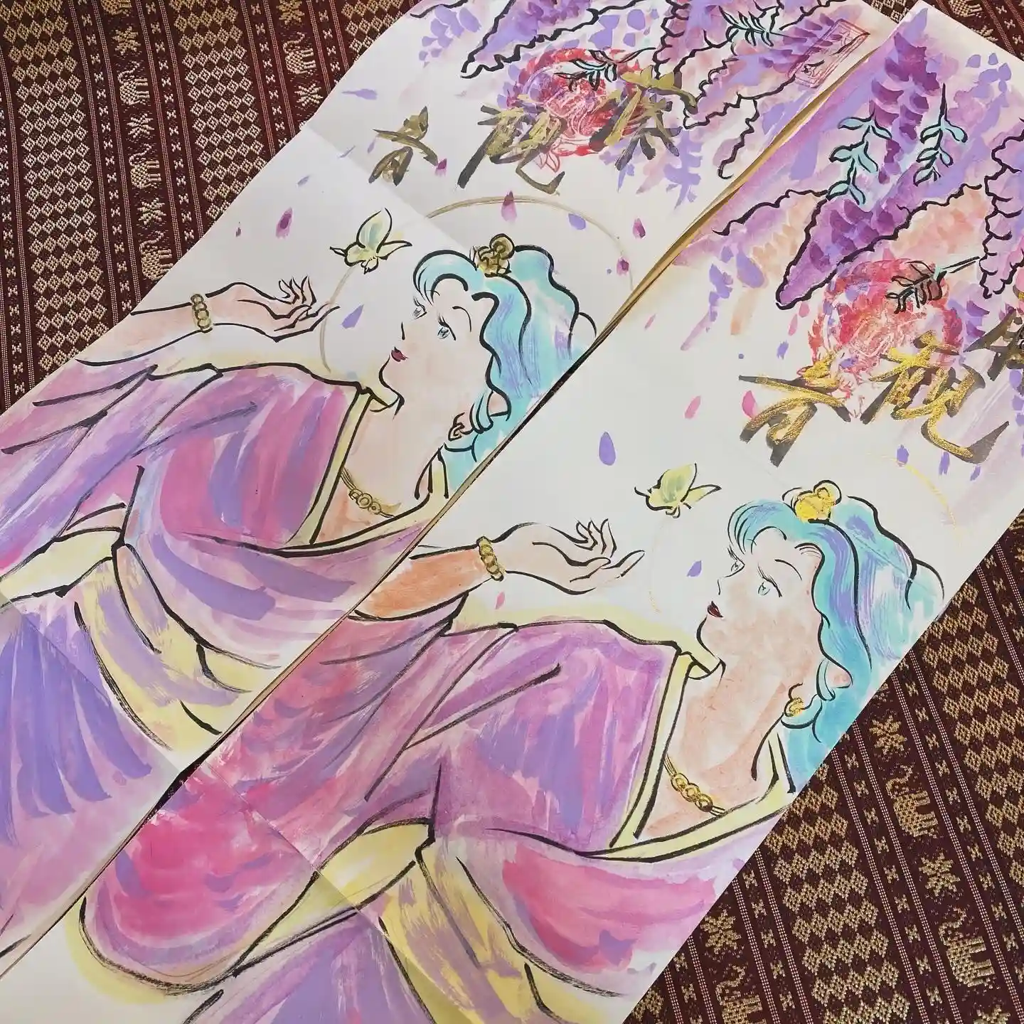 写真は宮城県の山元町のホールで、1日美術館が行われた時の様子✨鳳仙寺の御朱印帳も展示して頂きました✨奥には小松美和さんの作品が見えます✨一流のアーティストさん達の作品の末席に✨