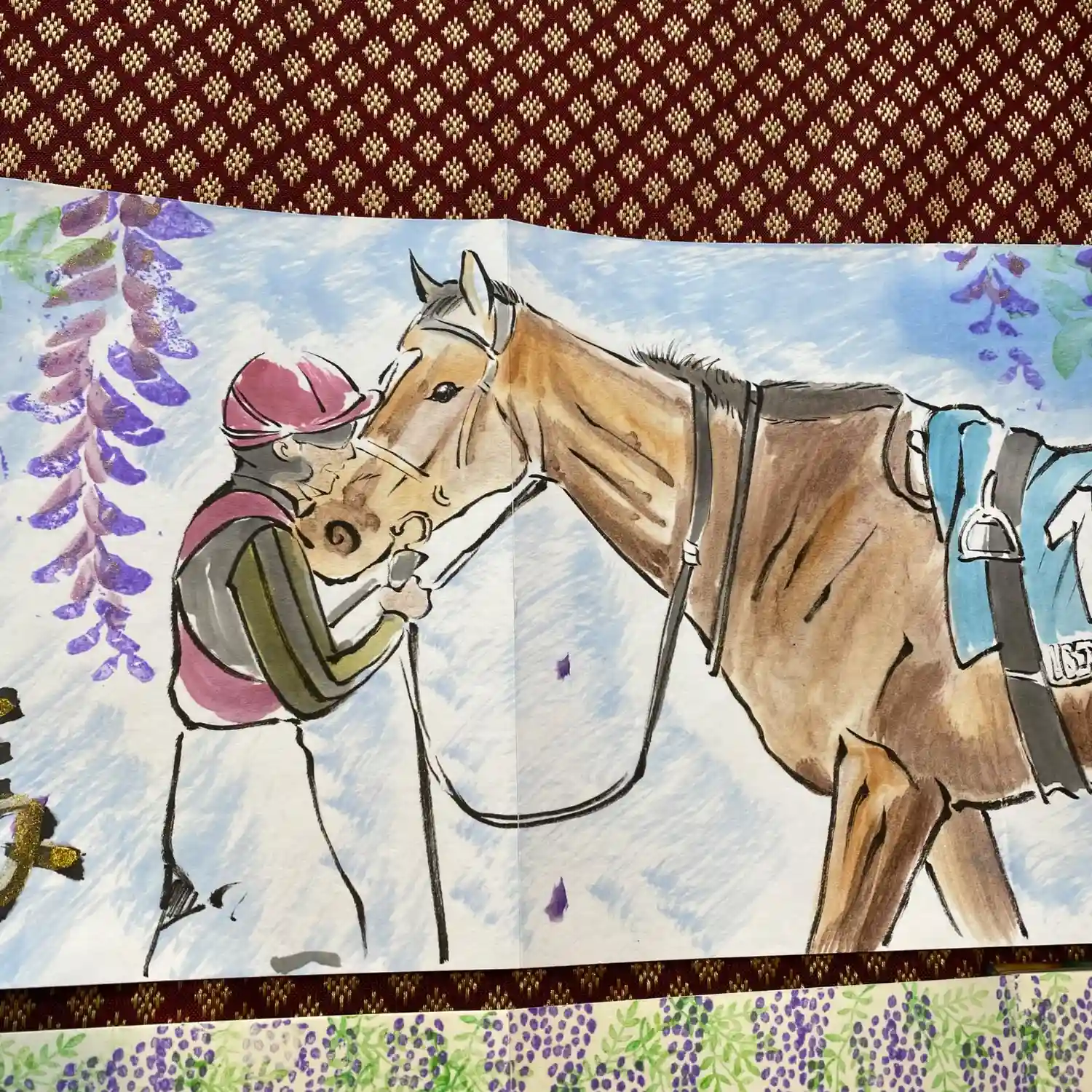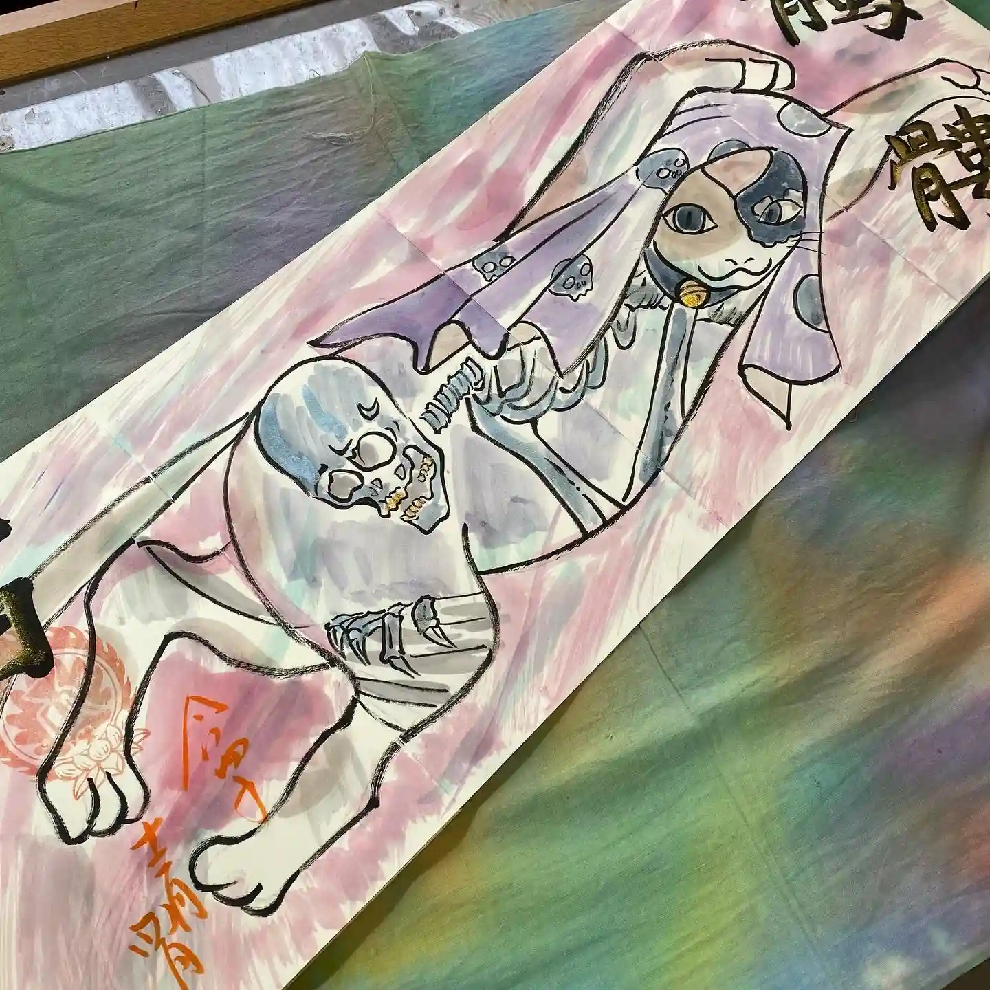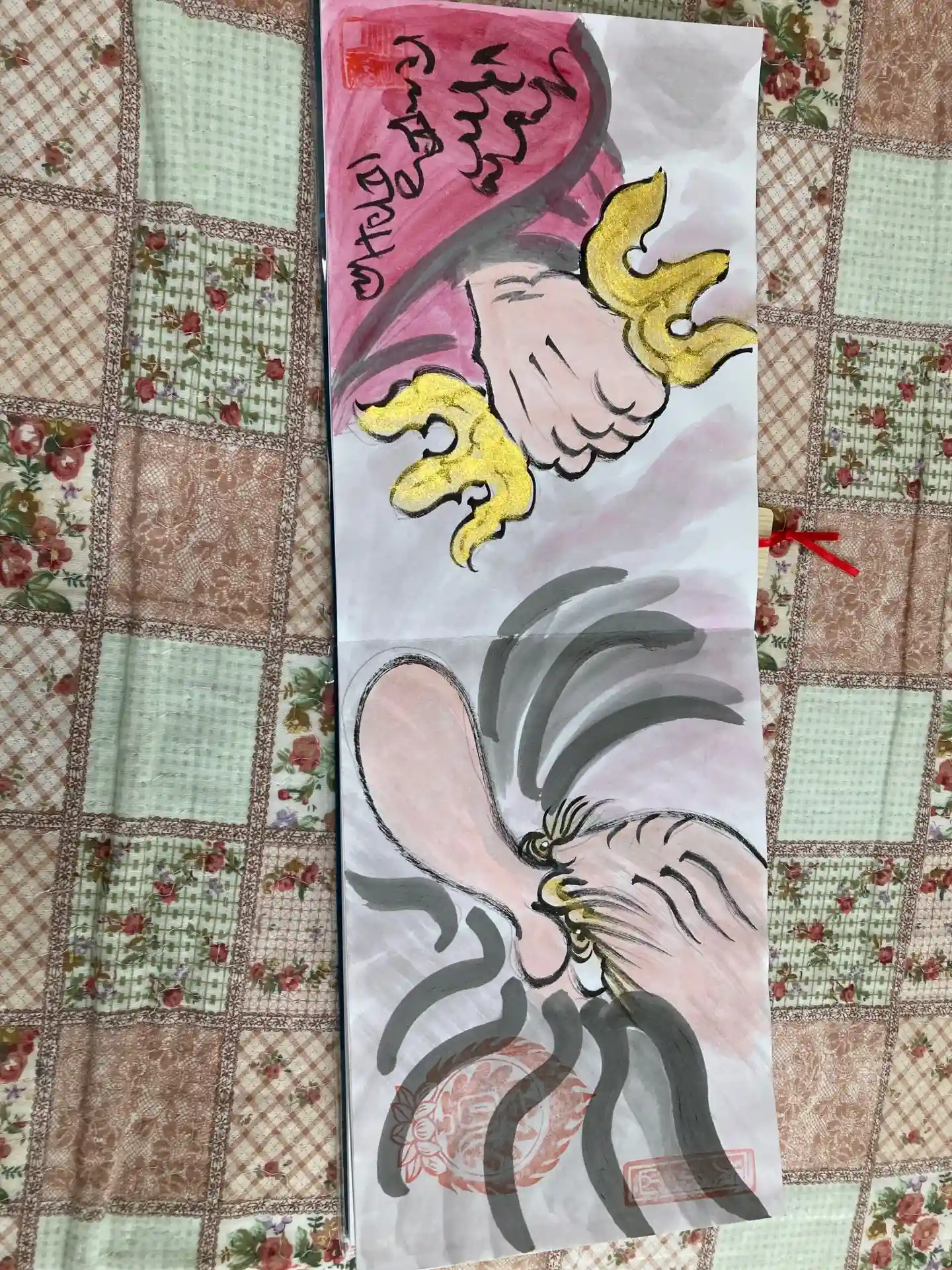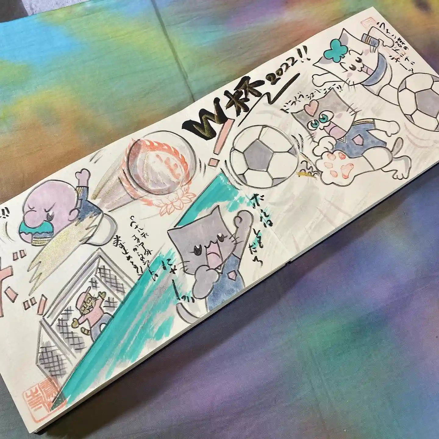 写真は宮城県の山元町のホールで、1日美術館が行われた時の様子✨鳳仙寺の御朱印帳も展示して頂きました✨奥には小松美和さんの作品が見えます✨一流のアーティストさん達の作品の末席に✨