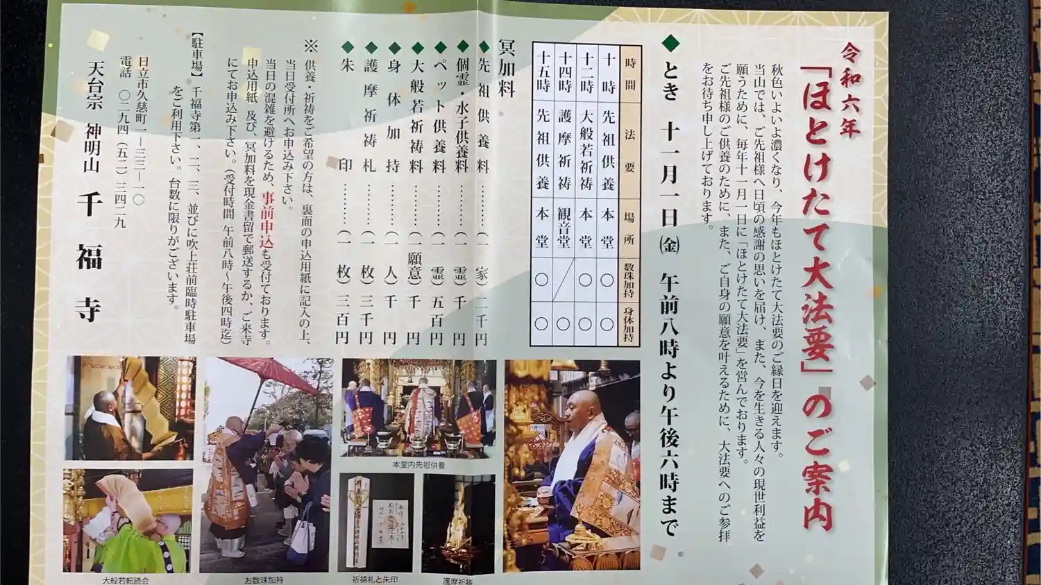 11月鳳仙寺の予定です✨基本的な受付は9時から12時までですが、それ以降も対応の時もありますので尋…