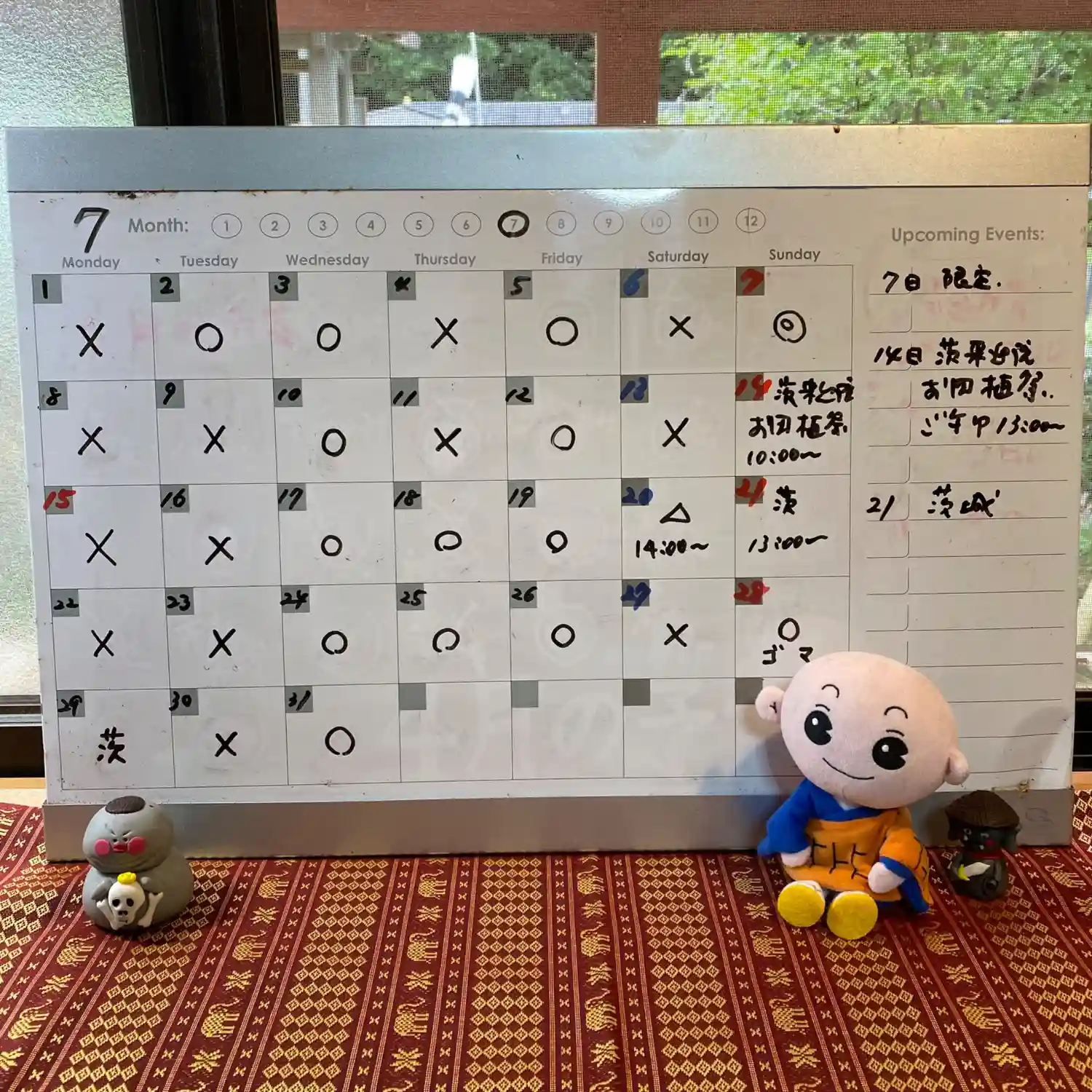 7月の予定です✨明日は11時から13時半まで不在になります。18日は「お寺マルシェ✨」またライブペ…